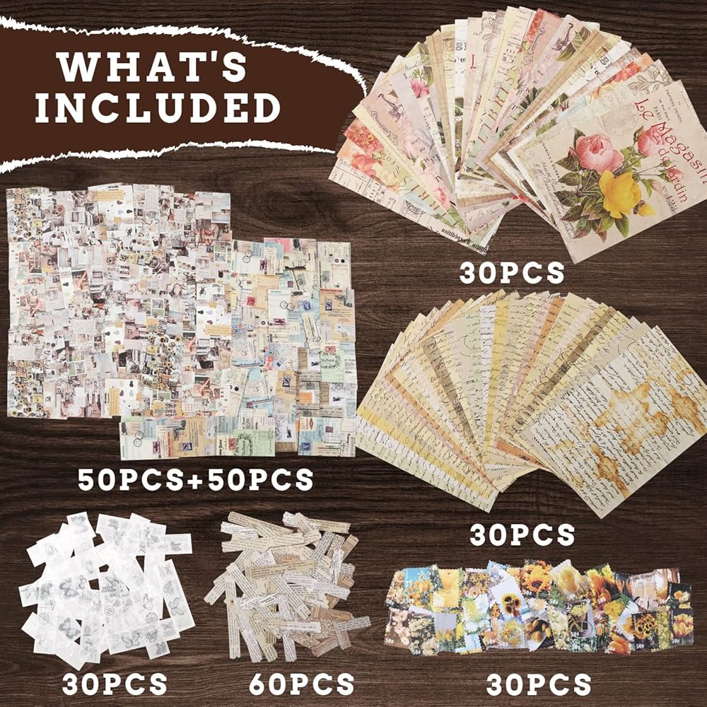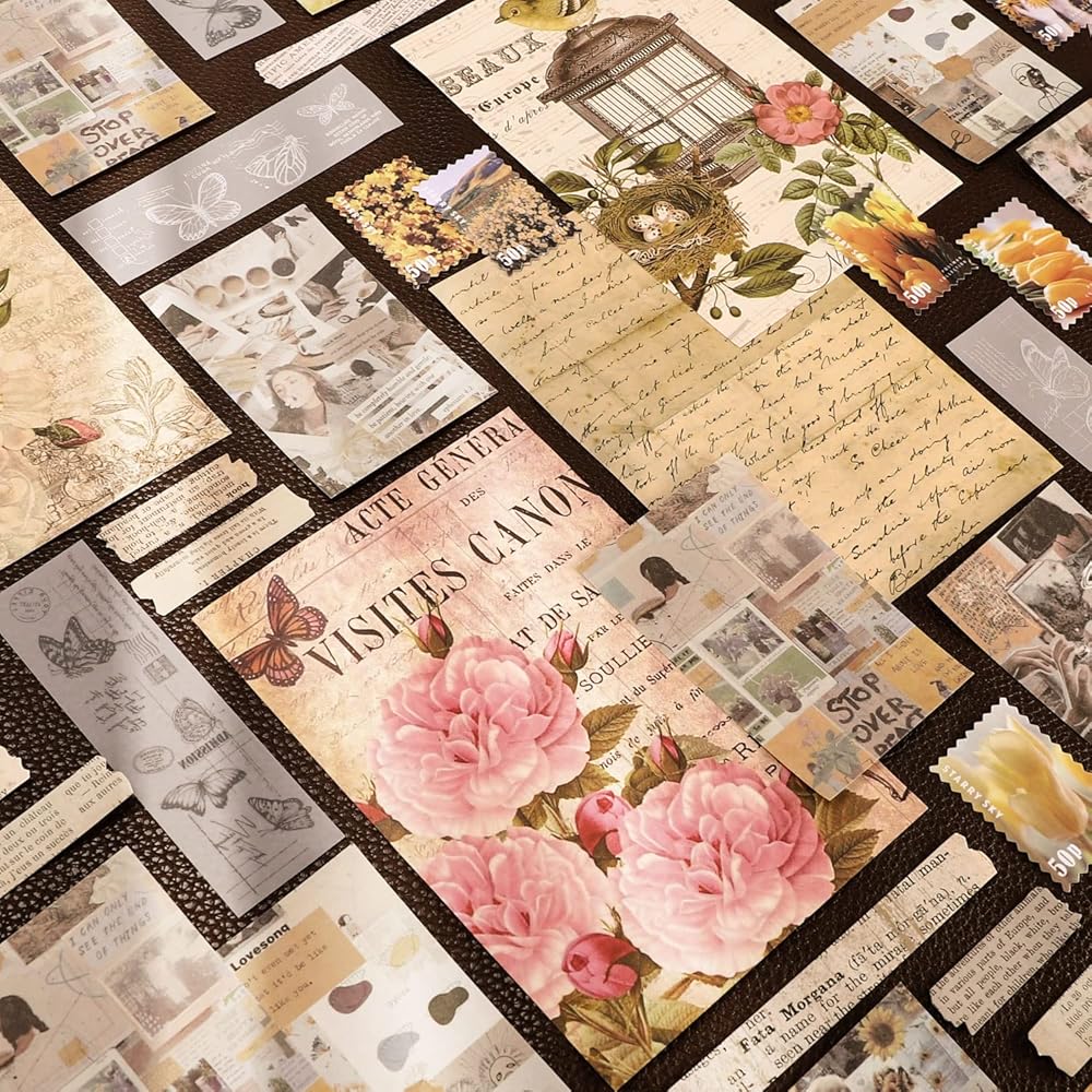 🌸【 PACKAGE INCLUDED 】 - 6 sets of vintage journaling scrapbook paper in different series (total 360PCS). 45PCS vintage scrapbook paper stickers in different themed colors and style, 40 sheets of flower stickers, printed on paper sticker, meeting your various decoration needs.