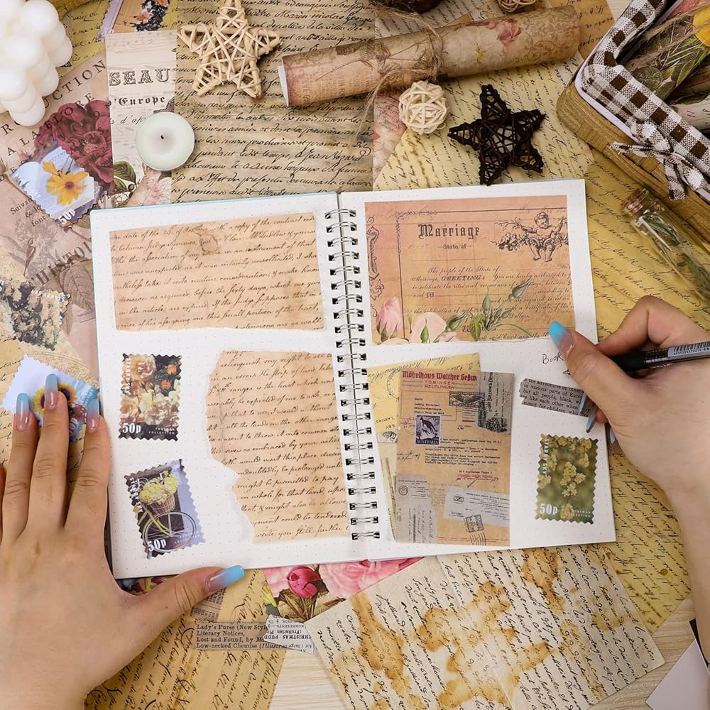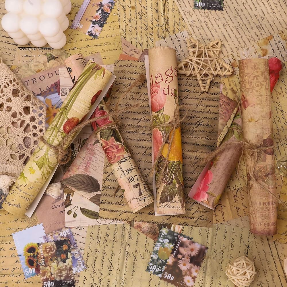 🌸【6 THEME DESIGN 】 - Retro journaling paper supplies are designed with a variety of themes, including vintage floral patterns, letters, grids, landscapes, postmark design, and flower stickers, which are available in different colors, tasteful embellishments to meet your all kinds of paper craft DIY requirement.