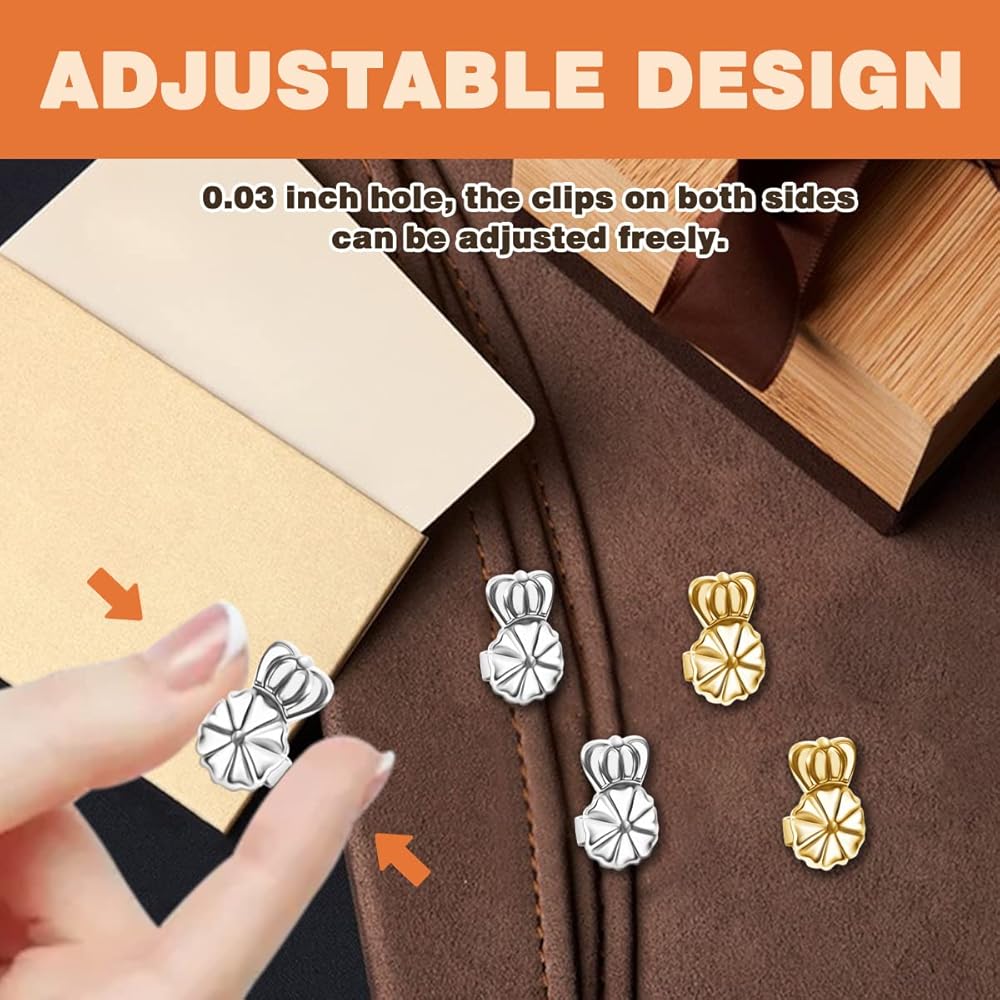 Adjustable design: The earring lifters can help you fix the droop earrings in the right position, stretch the earlobe and the wearing problem of heavy earrings, specially designed for droopy earrings, without affecting the beauty of use.