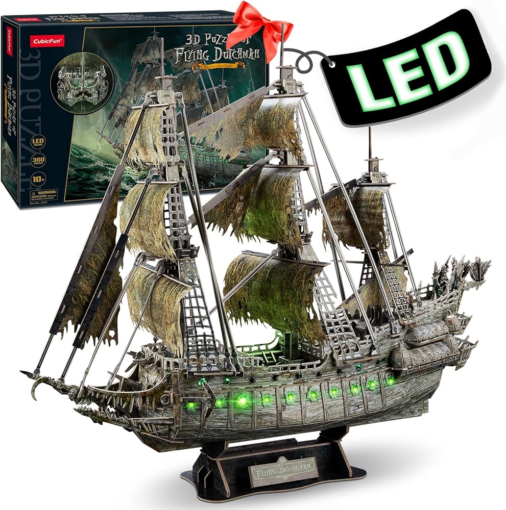 CubicFun 3D Puzzles for Adults Green LED Flying Dutchman, 360 Pieces Pirate Ship Arts & Crafts for Adults Gifts for Men Women Model Kit, Lighting Ghost Ship Easter Gifts Father's Gift