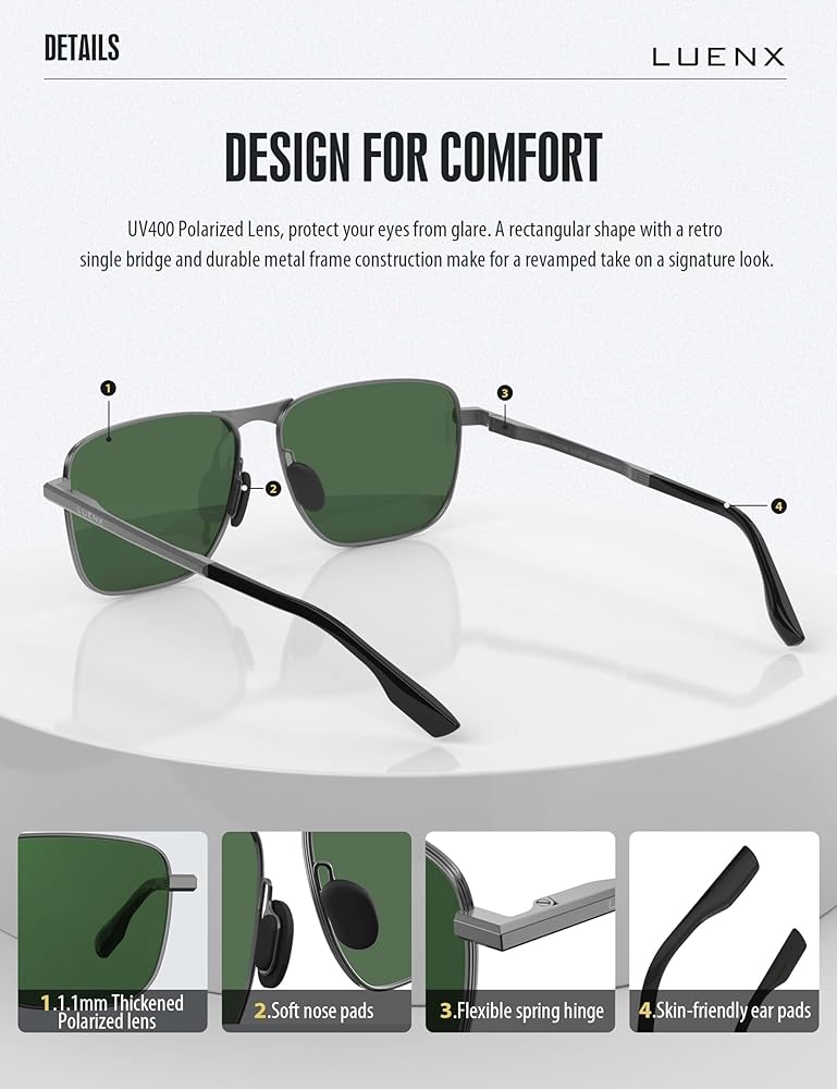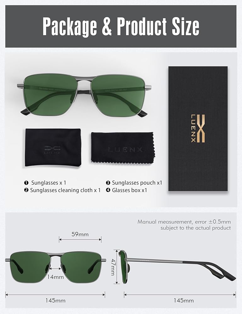 [GIFT PACKAGE & LIFETIME SUPPORT] Including Sunglasses*1; Soft glasses pouch*1; Glasses cloth*1; Packaging carton*1. All LUENX customers enjoy 30 Days Money Back Guarantee; And that goes with a lifetime support! Just send us a message through Amazon.