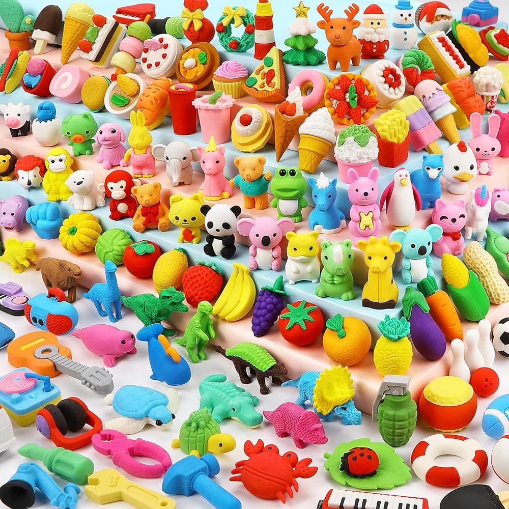 🦄EXCELLENT CLASSROOM REWARDS🐎: 120PCS huge mini erasers for kids, made of non-toxic and eco-friendly rubber, safe for little child. Funny food animal erasers, erase pencil mark readily, make mistakes turn to a joy. A great motivator for students, best classroom prize & good behavior reward & bulk school supplies, well improve learning passion in class.