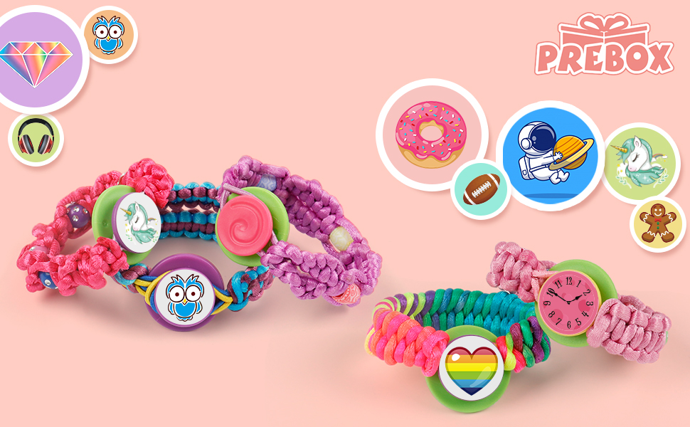 【ONE-OF-A-KIND Creation, Just Your Style】 More than 10 fashion string bracelets and 18 pattern stickers make you in different styles every day. You are also encouraged to create headbands and hair accessories. Start your bracelet toys trip with editors picks.