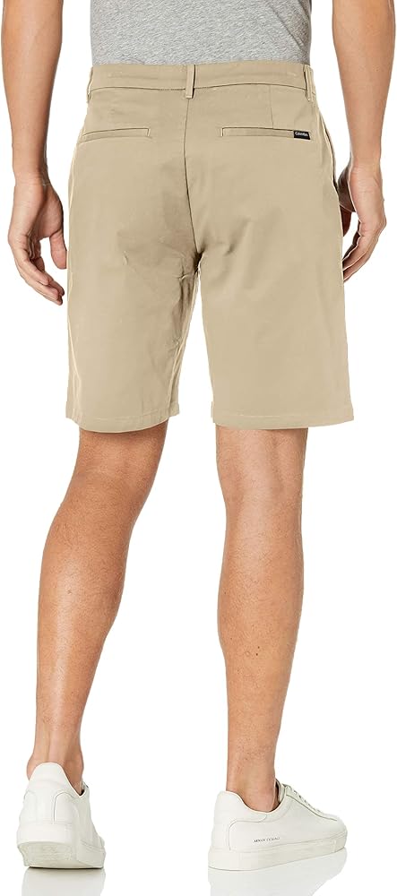 Made with a solid design and infinite flex fabric, these Calvin Klein shorts feature a straight leg fit for an easy-to-style look. Designed with front slip pockets, back welt pockets, a signature woven logo tag and a 9" inseam.