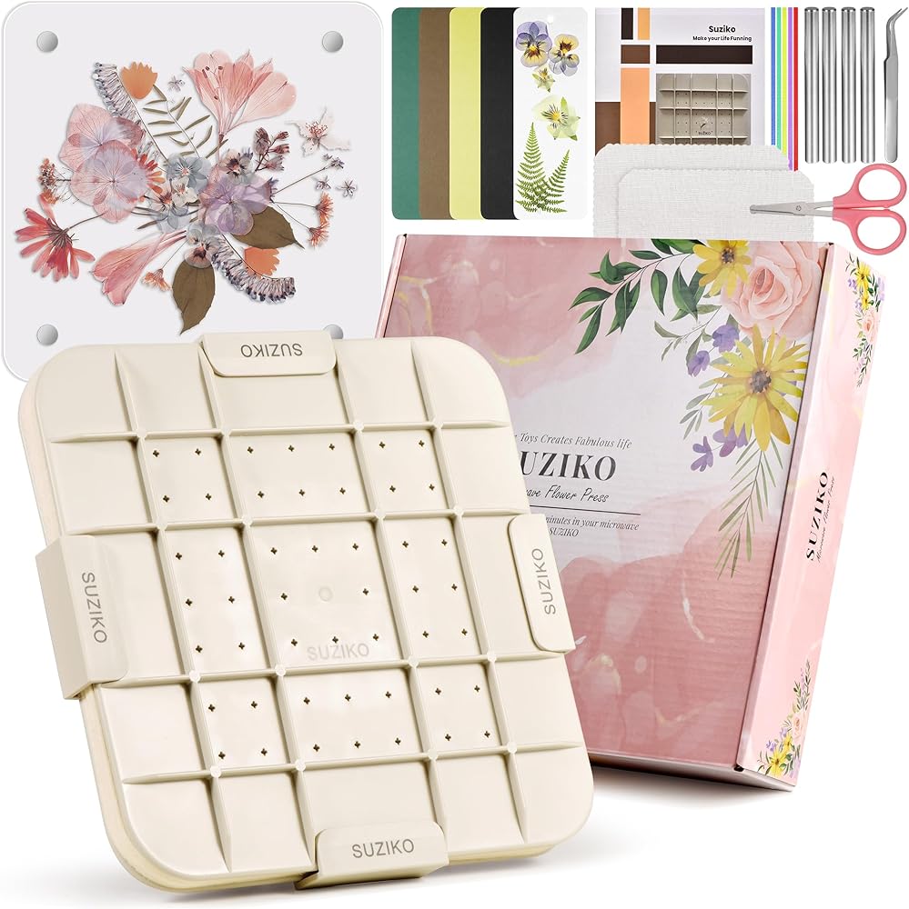 𝐒𝐮𝐳𝐢𝐤𝐨 𝐃𝐫𝐲 𝐅𝐥𝐨𝐰𝐞𝐫 𝐈𝐧 𝐌𝐢𝐧𝐮𝐭𝐞𝐬:Suziko flower press Quickly dry flowers and leaves in just minutes With the help of the microwave, you can press your flowers and Leaf quickly and efficiently, saving time and enjoy your press flowers faster, No need to wait for weeks