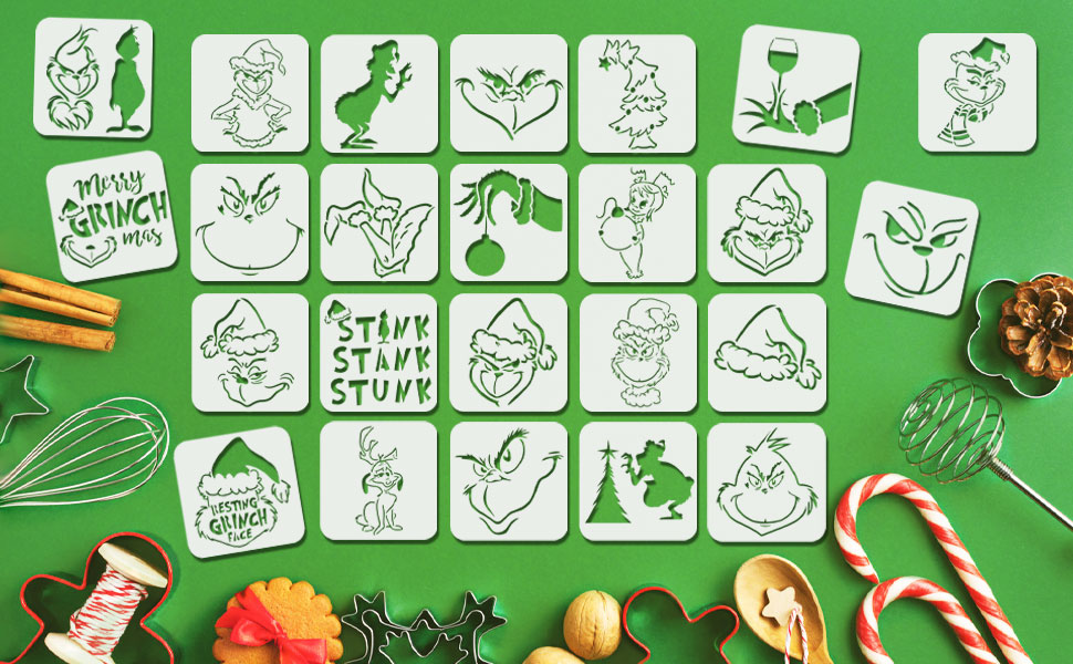 🎅Package Contains:Our package comes with 24Pcs grinchs Christmas stencils in a variety of design, which is perfect for making Christmas ornaments or holiday crafts.