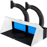 Premium Elite Hobby Airbrush Paint Spray Booth with powerful dual exhaust fans that provide 5.2 meters cubed per minute of airflow suction. That high volume of airflow ventilation extraction keeps particles and vapor away from you and your project. It includes four built-in led lights to keep the workspace well-lit. Includes a 7.5" Diameter revolving turntable that allows you to spin your project to reach all the areas to be painted.