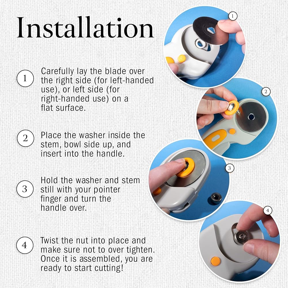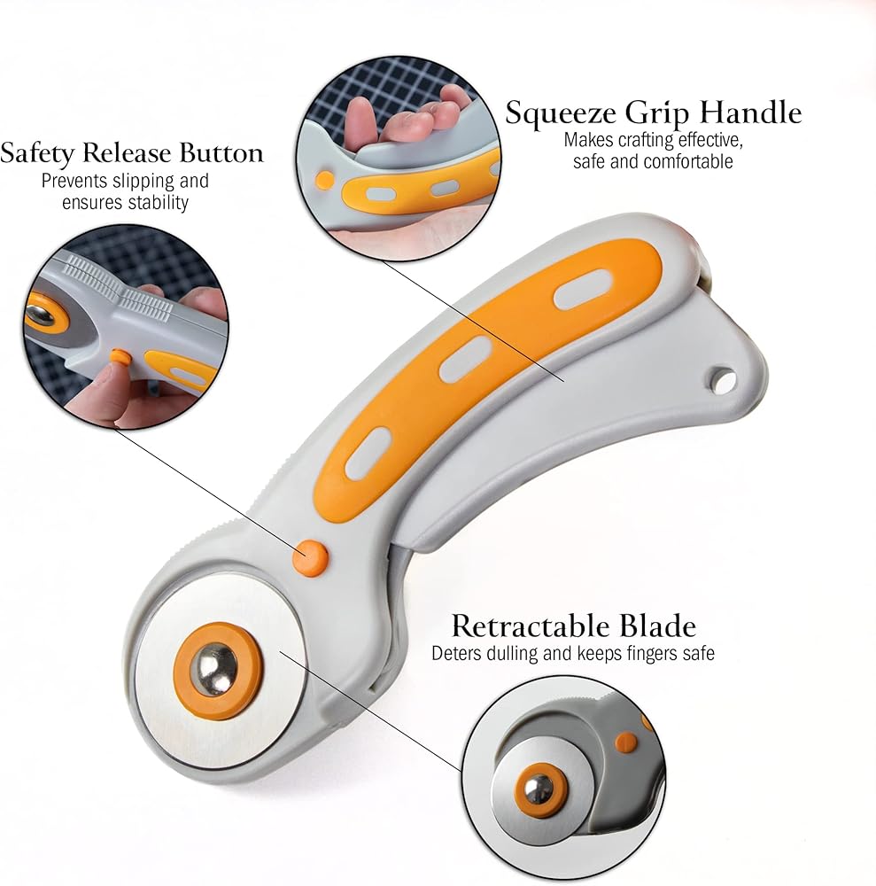 RELIABLE ROTARY CUTTER - Both right & left handed users love our 45mm titanium contour fabric cutter! Its dual action safety lock & ergonomic clench handle ensures safety while you cut through layers of materials with speed. Includes 5 extra blades!