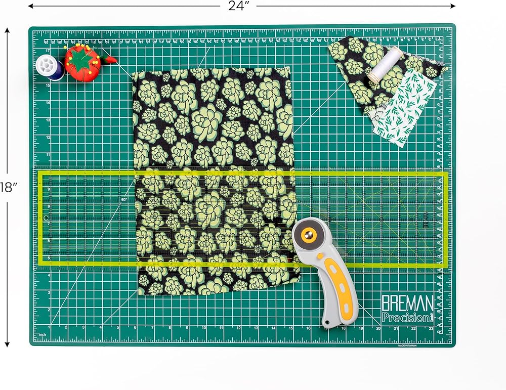 DURABLE SELF HEALING CUTTING MAT - Our 2-sided, protective, fabric cutting mat measures 19”x25” giving you a FULL 18”x24” grid surface, with ACCURATE 1" and 1/2" grid with 1/8" ruler marks for precise alignment and 45° and 60° angle guides to meet your cutting needs