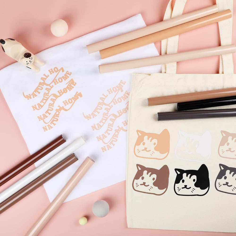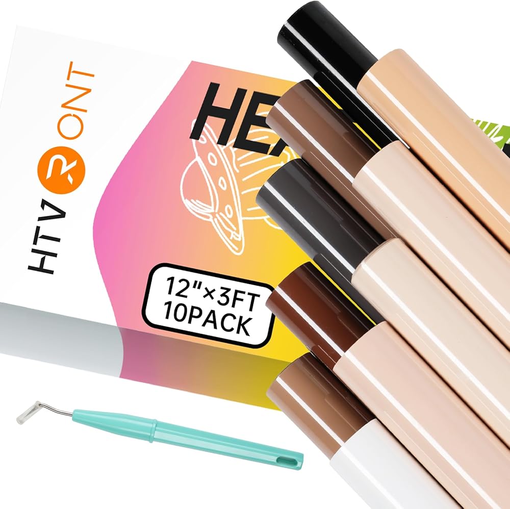 HTVRONT Skin Tone HTV Vinyl Bundle - 10 Pack 12" ×3FT Brown Heat Transfer Vinyl Rolls, Skin Tone Iron on Vinyl for T-Shirts, Beige HTV Bundle with 10 Assorted Colors