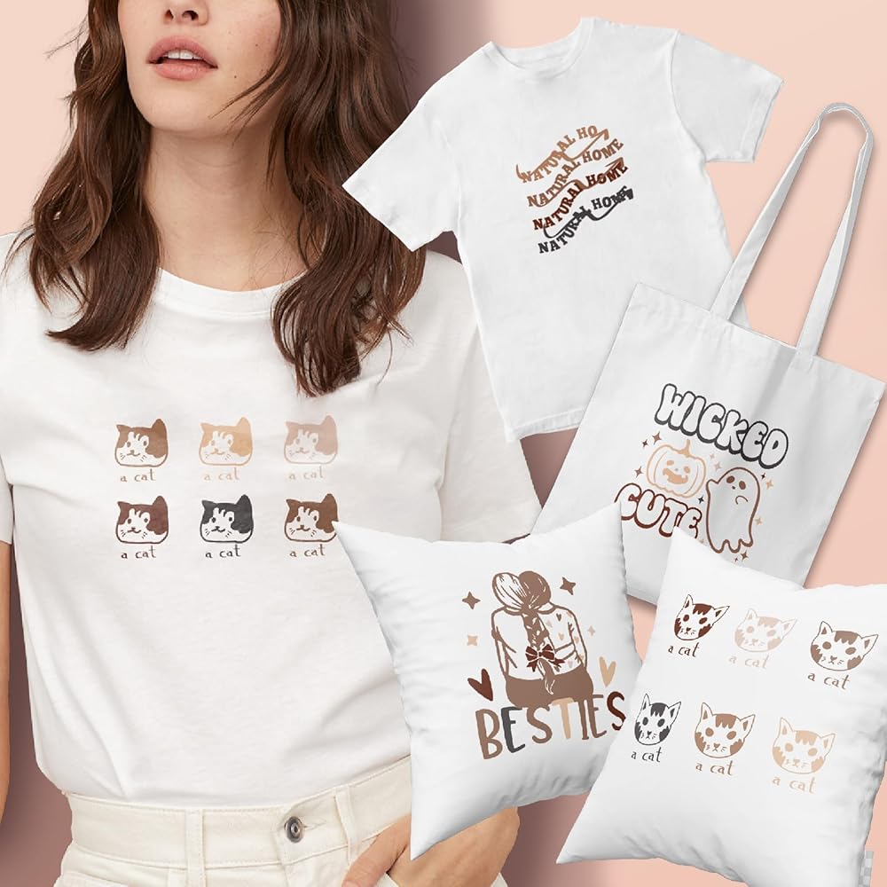 ♻🎁【GREAT STICKINESS & MACHINE WASHABLE】White iron on vinyl is pretty sticky, they adhere backed heat transfer vinyl to fabric seamlessly and has held up well in the wash, Reverse wash will be better. Your designs will keep the same color even after repeated washing cycles.Unlike other white htv vinyl with fading, peeling and crack.