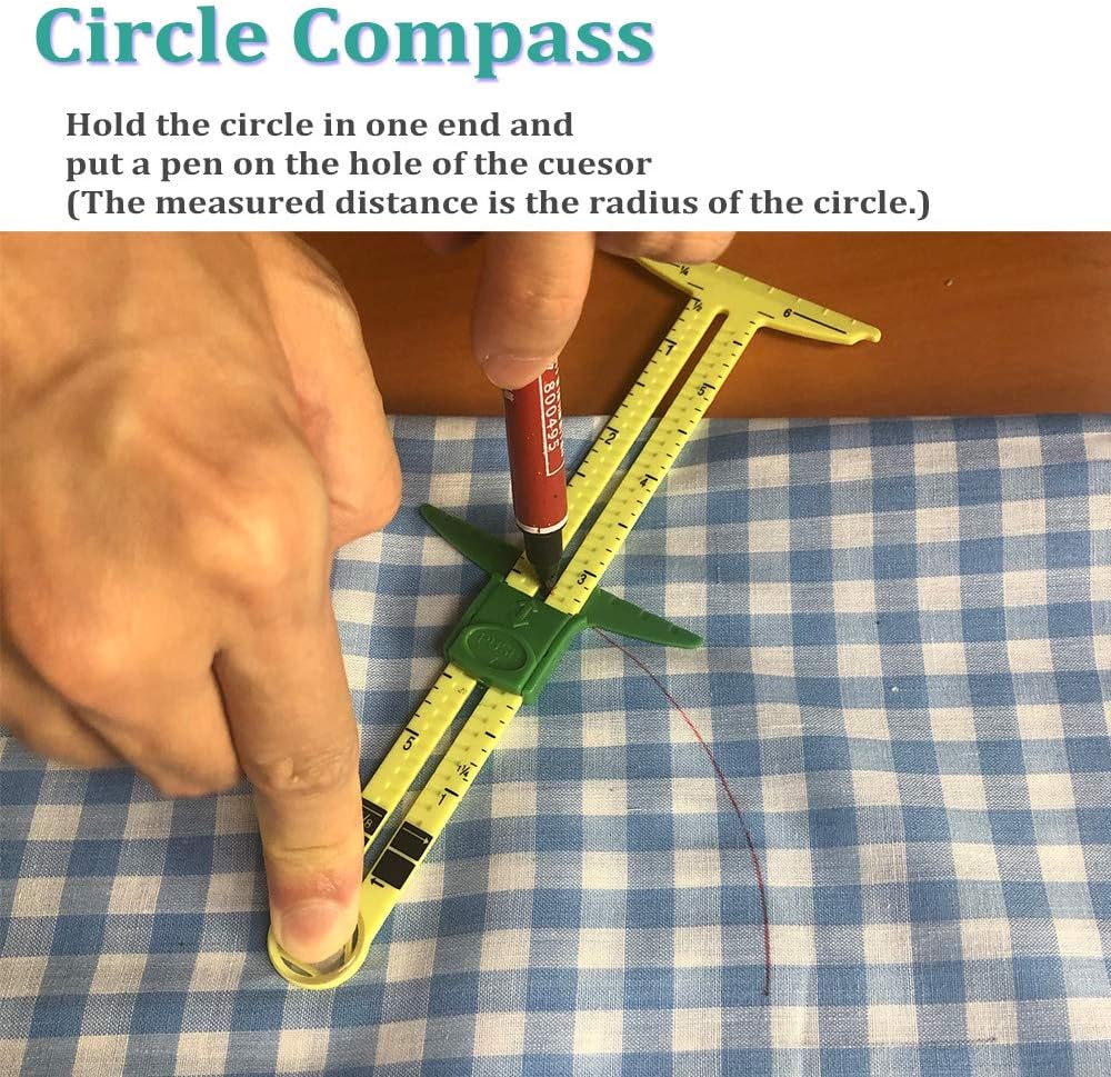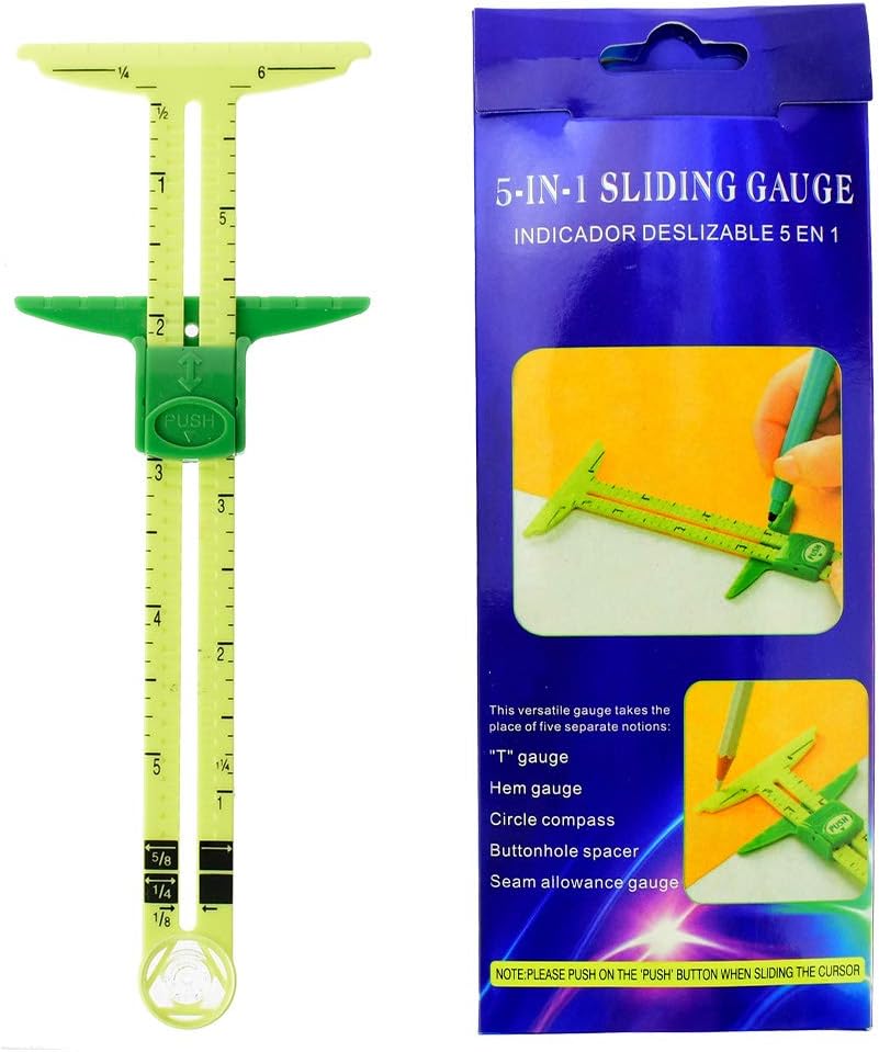 BIGTEDDY - 5in1 Handy Sliding Sewing Gauge Quilting Tools for Beginner Work as T-Gauge, Hem Gauge, Seam Allowance, Buttonhole Spacer and Circle Compass