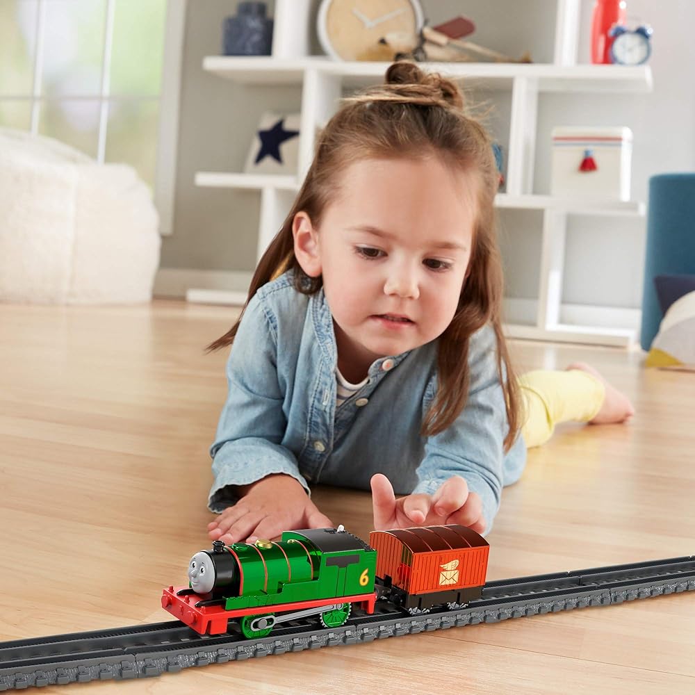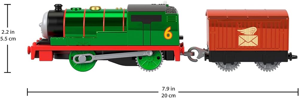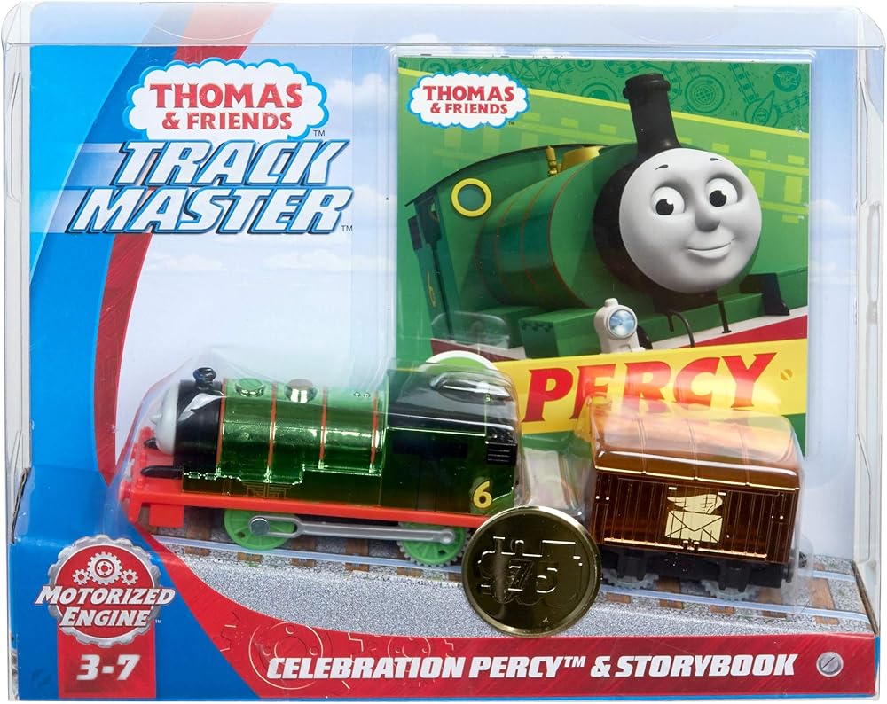 Preschoolers can celebrate their favorite No. 6 engine with this shiny Thomas & Friends motorized toy train from Fisher-Price! Celebration Percy comes with an attachable cargo car and a special storybook for little engineers to read. Flip the switch on top of the train to send Percy and his cargo car racing along any TrackMaster track for exciting adventures! (Track sets sold separately.)