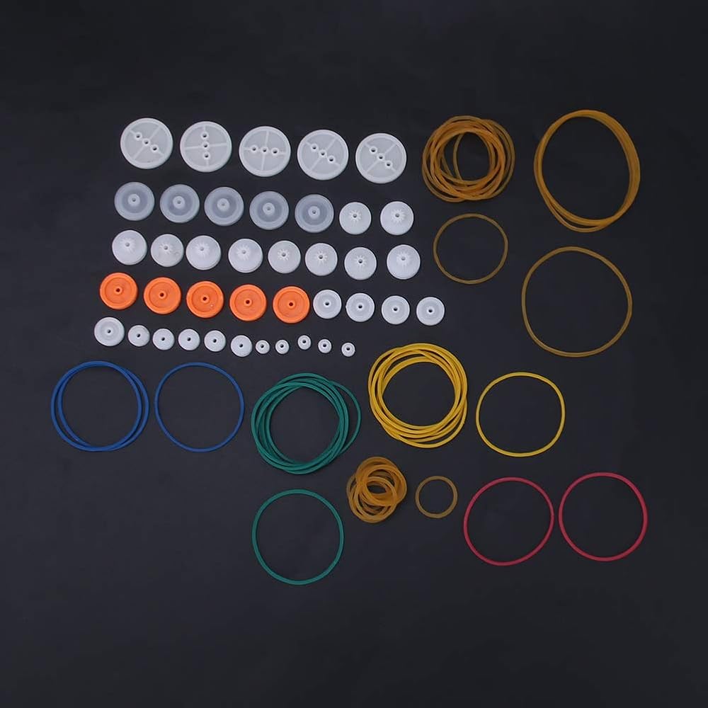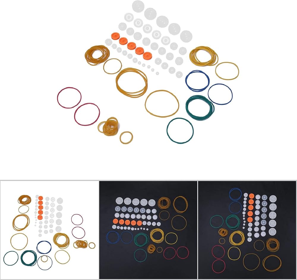 84pcs Transmission Belt Pulley Set 2mm Shaft Diameter Plastic Gears Pulley Shaft Belt Worm Rack Set DIY Gear Assortment Accessories for DIY Model Toy Projects