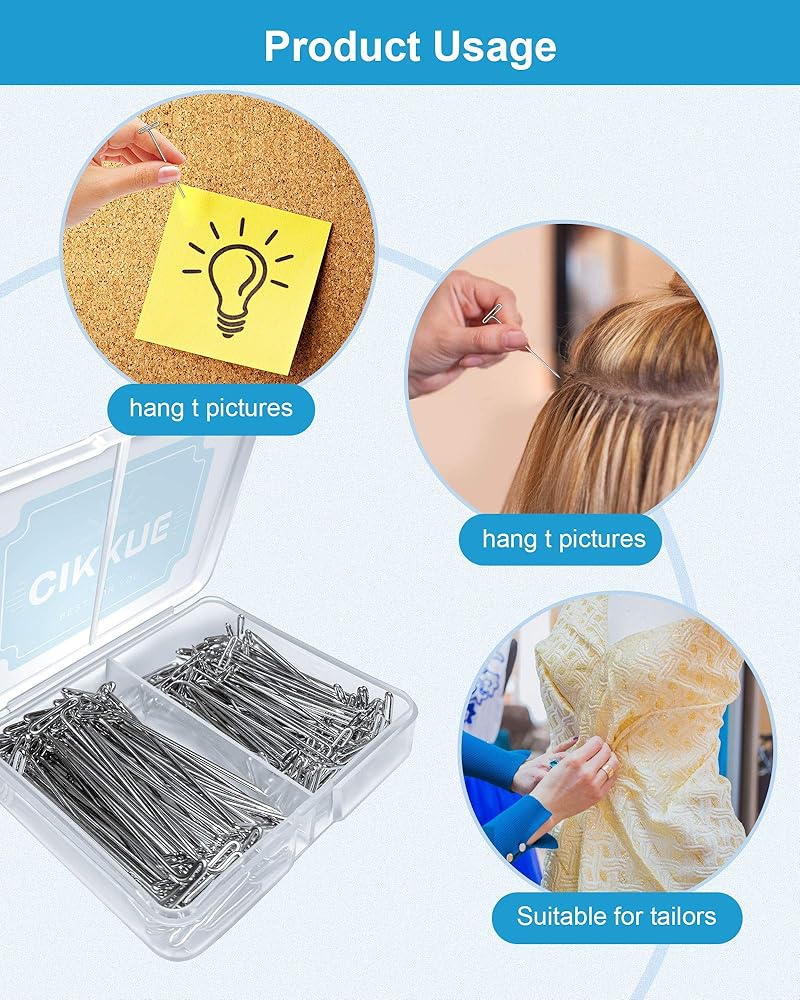 Widely Used. The applicable scenario of this metal T Pins is very wide, they can be used for handicrafts, sewing projects, jewelry displays, wig styling and more.