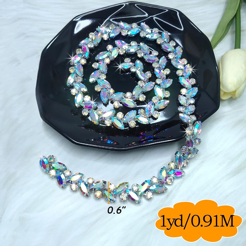 ❤Premium Quality: Our rhinestone trim chain is made of premiuim materials--- Clear Glass Rhinestones with silver Metal Base with clear crystal, super shiny and make your life colorful. You will receive Length:1 yard(35"),Width:0.6" rhinestone trim perfect package for you.