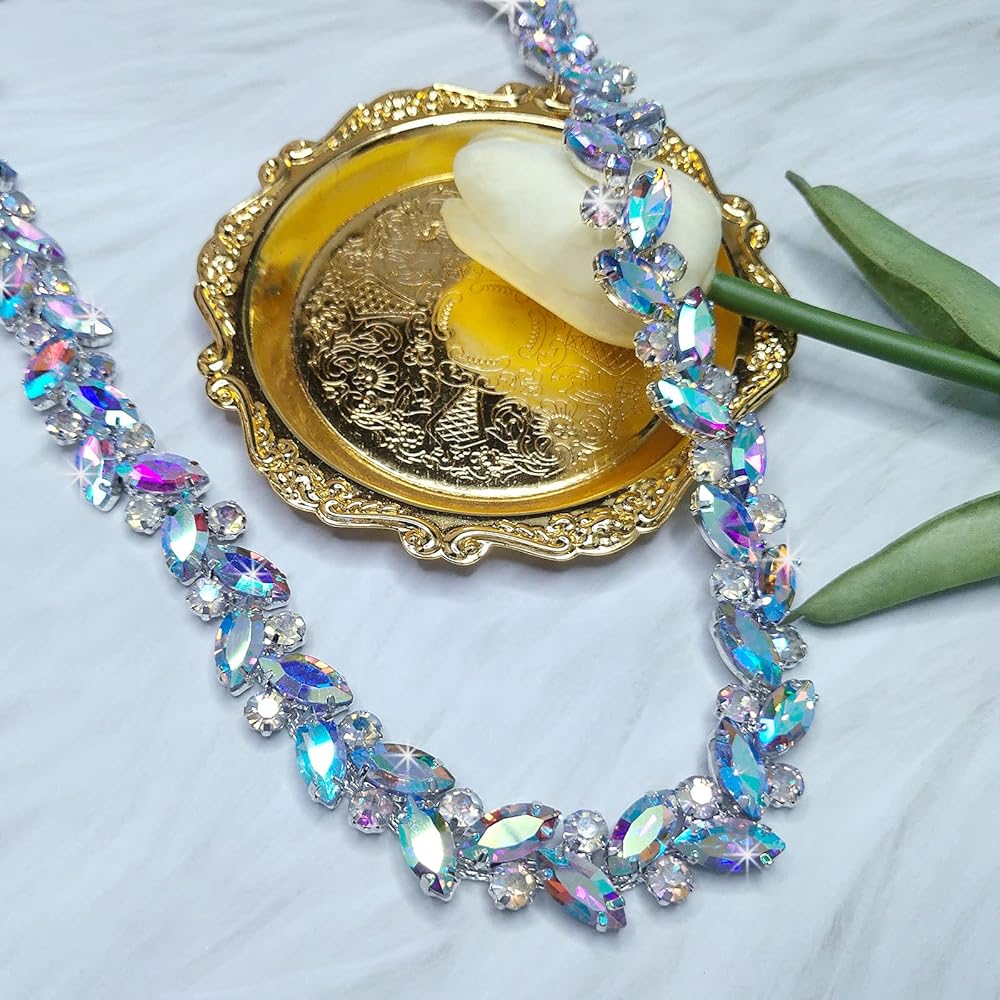 ❤Beautiful design: Our rhinestone chain design is refined and special with different diament shape. Its a eye-catching trim for any occasion you attend to.