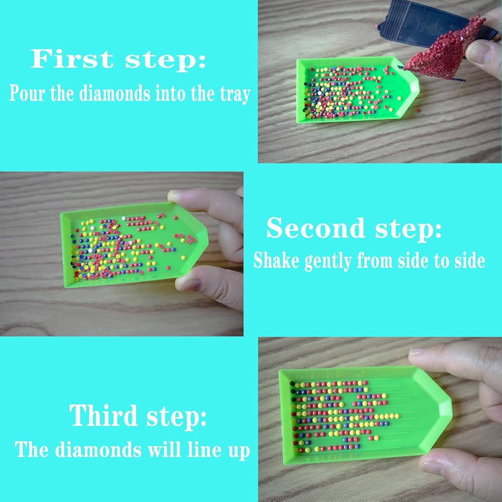 [Ease to Use]: Pour the diamond accessories on the plastic tray, shake it gently,then the diamond rhinestones will be in order. They can saving lots of time on manual sorting. The beads also can be easily put on the Bead Sorting Trays through the pointed handle.