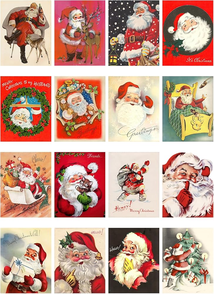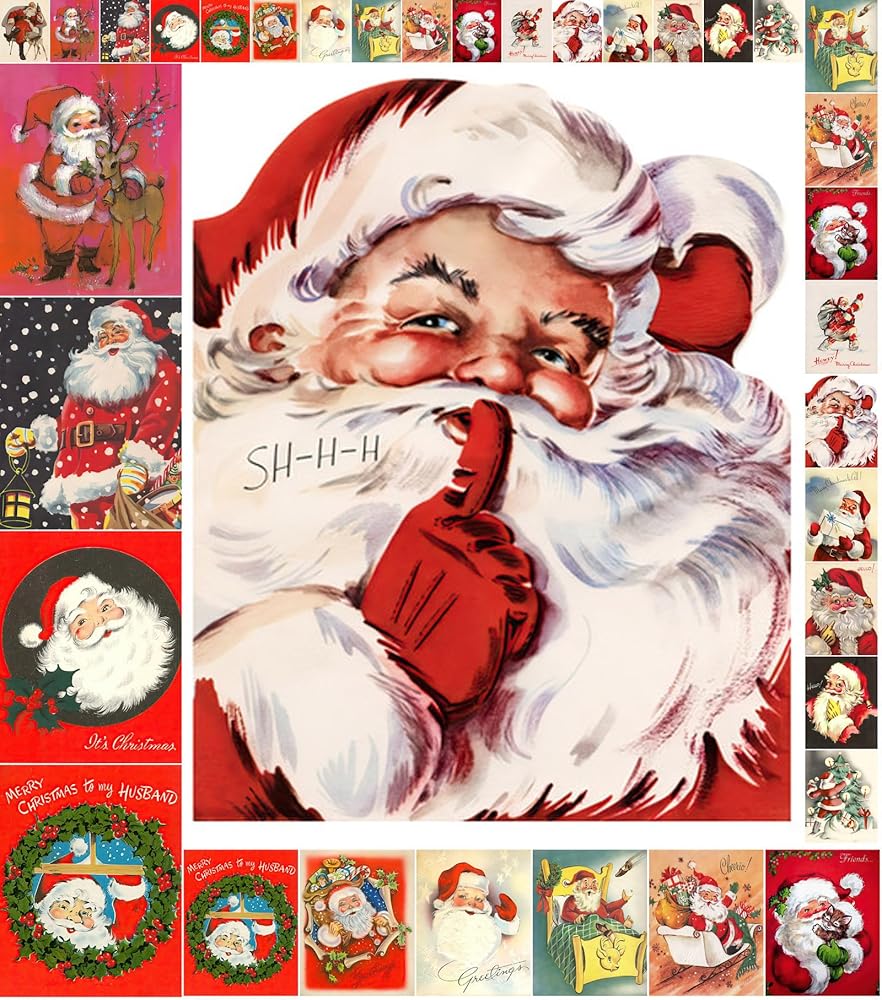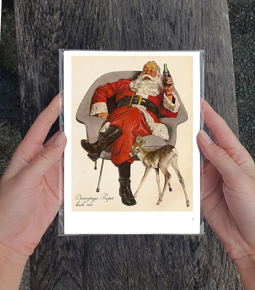 Decoupage Paper Pack (35 Sheets 6"x8") Santa Ready for Christmas FLONZ Vintage Styled Christmas Pictures Cards for Decoupage, Craft and Scrapbooking