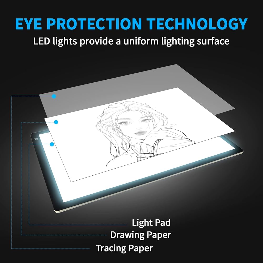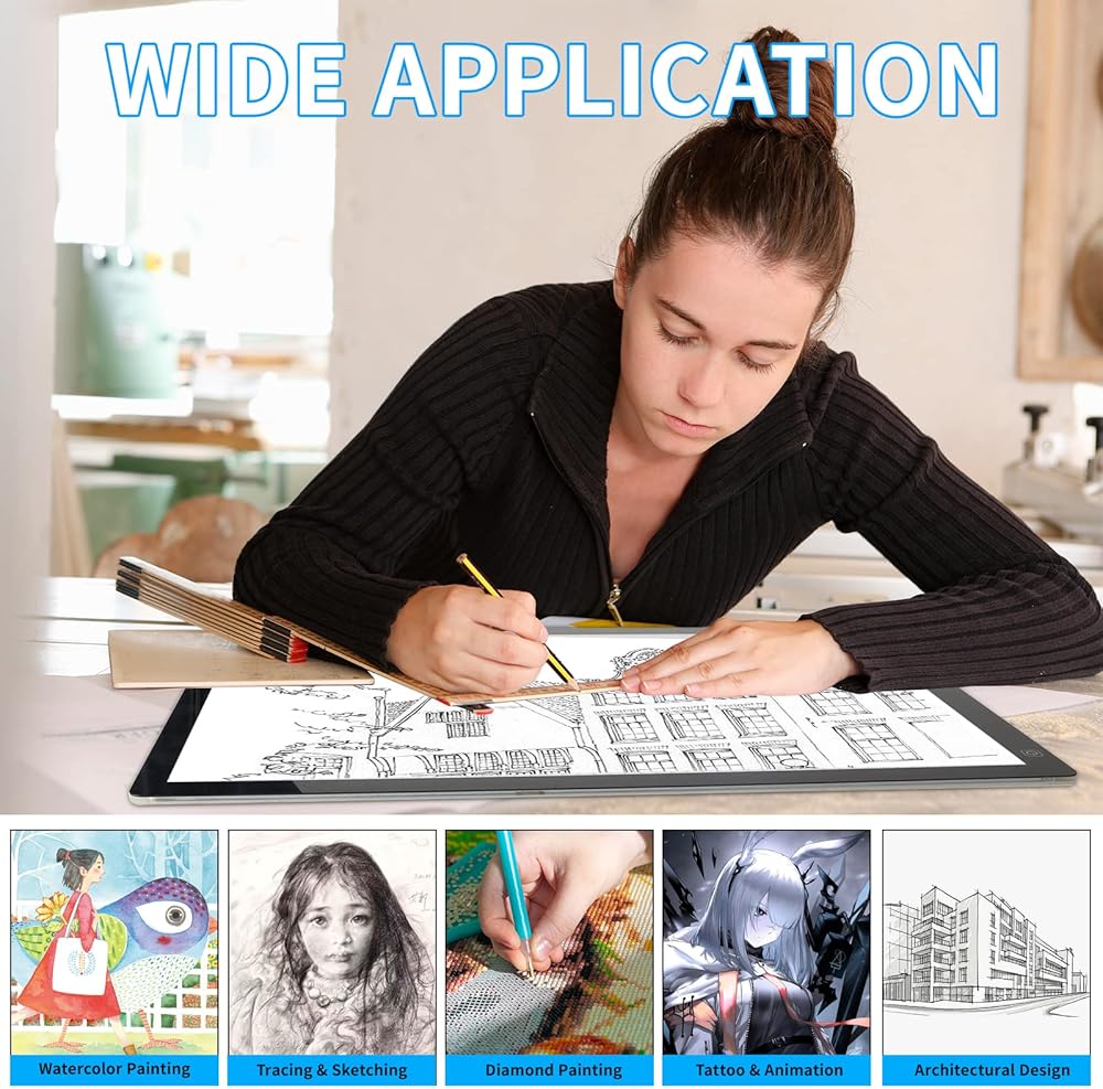 【 Wide Application 】 The light drawing board is ideal for Drawing, Tracking, Sketching, Animation,X-ray Viewing, Calligraphy, Diamond Painting, Architectural Design, Sewing Project, Fashion Design, Industrial Design etc. It is the perfect tool to improve child's drawing skills and also the amazing gift for Children's Day, Christmas, birthdays or any other holidays.