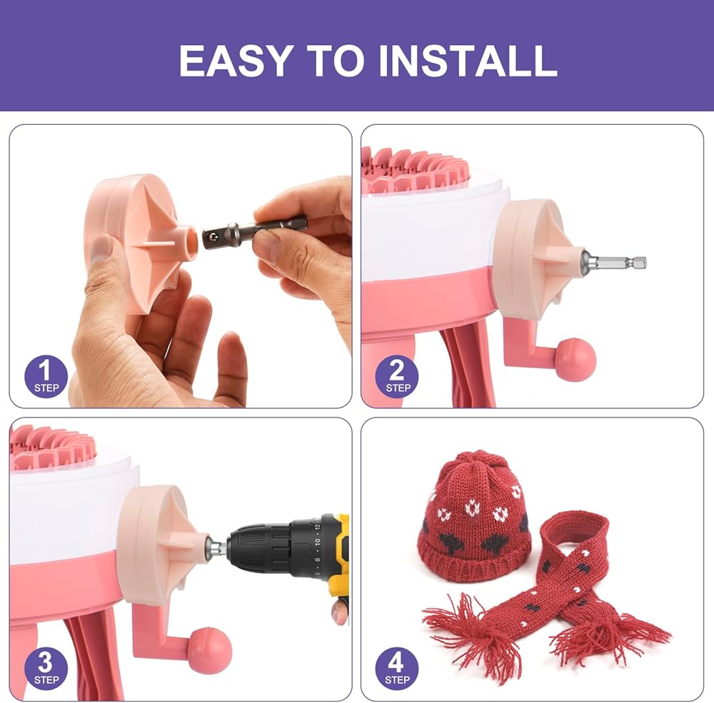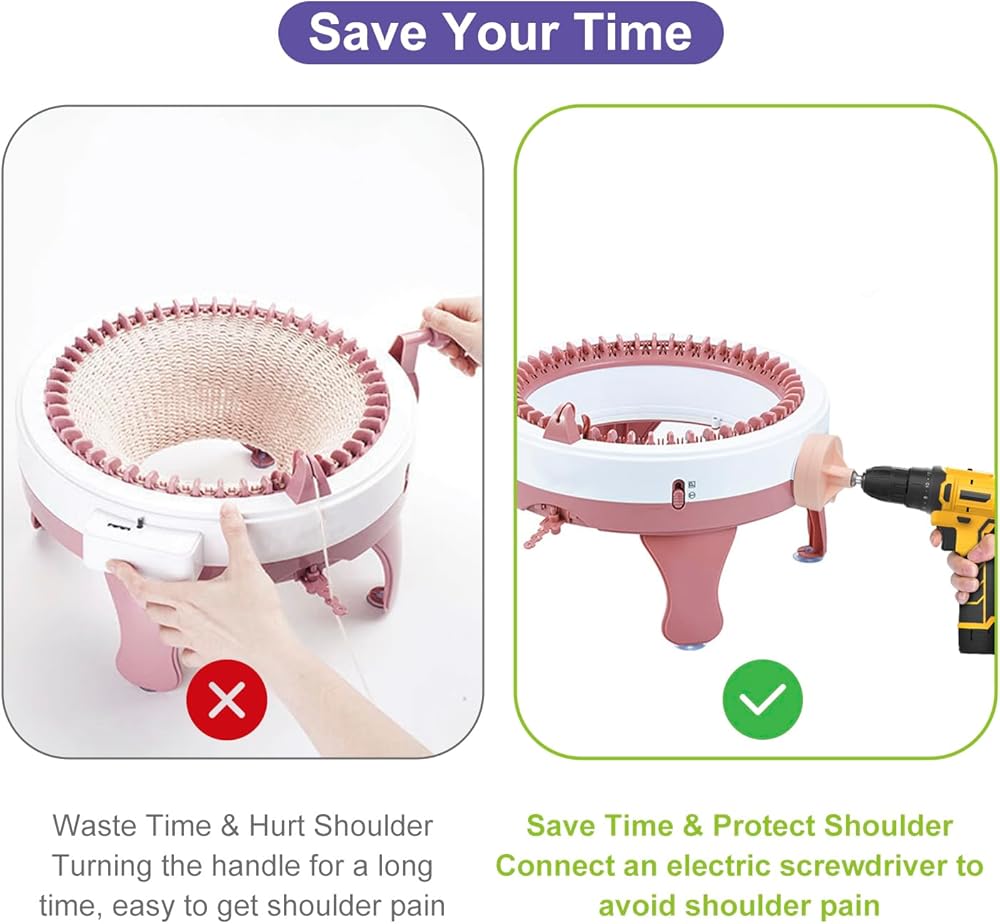 【Fast & Save Time】: Standard ¼”hex steel bit fits securely in any standard power drill/electric screw gun,without the need of additional adapters, No need to remove any part of your knitting machine. Then knitting machine adapter will help you quickly knit your own cool and fashionable accessories.