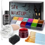 SFX Makeup Kit Professional Face Body Paint Halloween Special Effects Makeup Set with Scar Wax,10 Face Paint Brushes,Spatula Tool,2 Fake Scab Blood,Stipple Sponge Oil Based Face Painting Kit