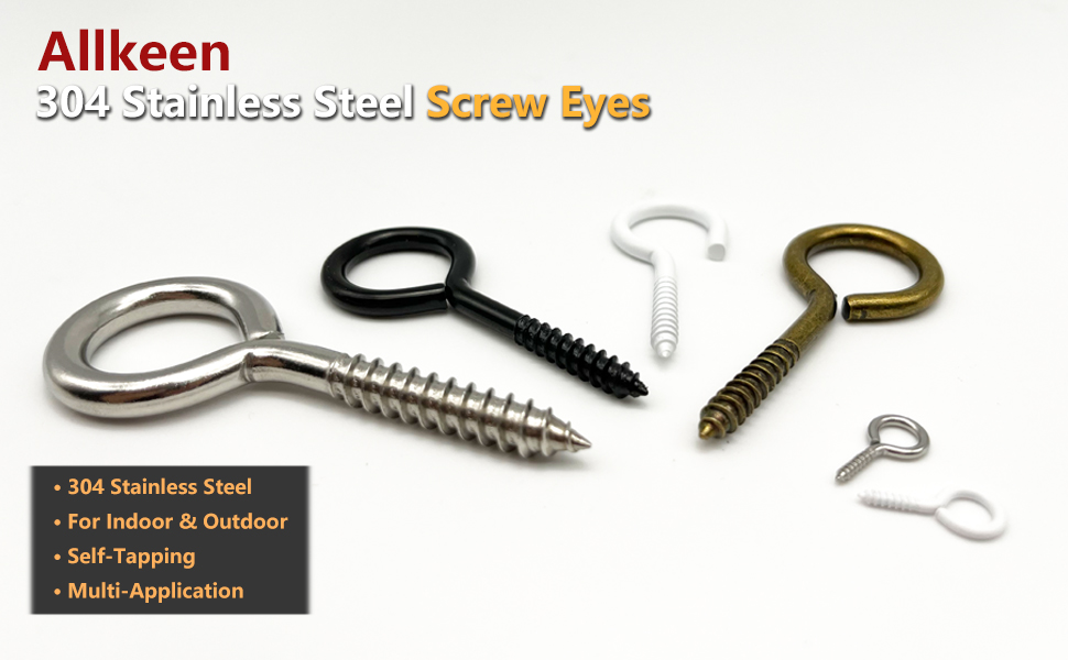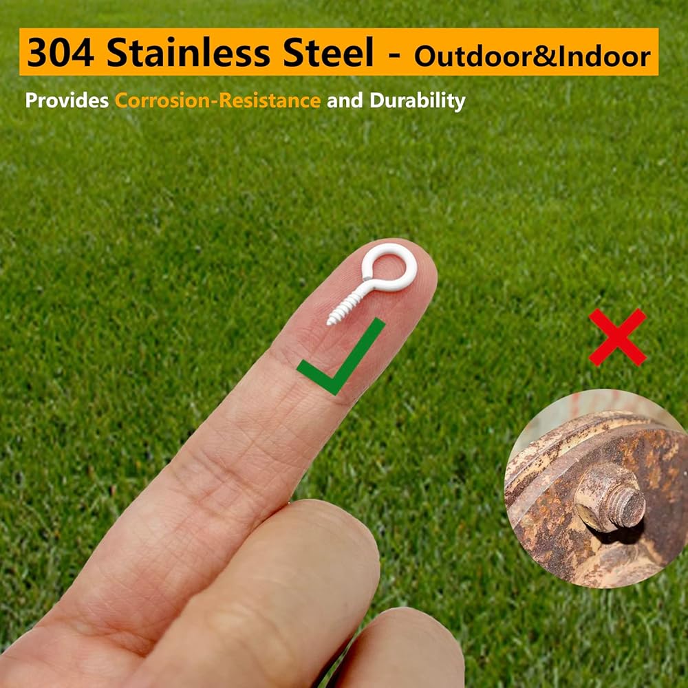 [Premium Material]: Made of 304 stainless steel, These eye screws has superior rustproof, waterproof and anti-corrosion properties. Perfect for indoor and outdoor applications