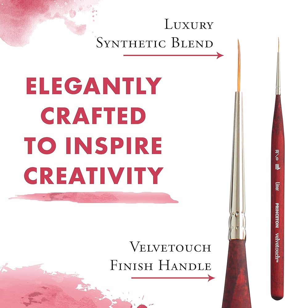Princeton Velvetouch Mini Liner Brush, Synthetic, Short Handle, Size 20/0 inch, 1 Count