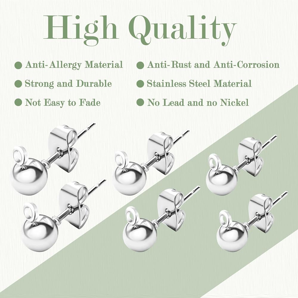 Material: Ball Stud earrings and butterfly ear plug are made of stainless steel, allergy-proof, lead-free, nickel-free, glossy and smooth.