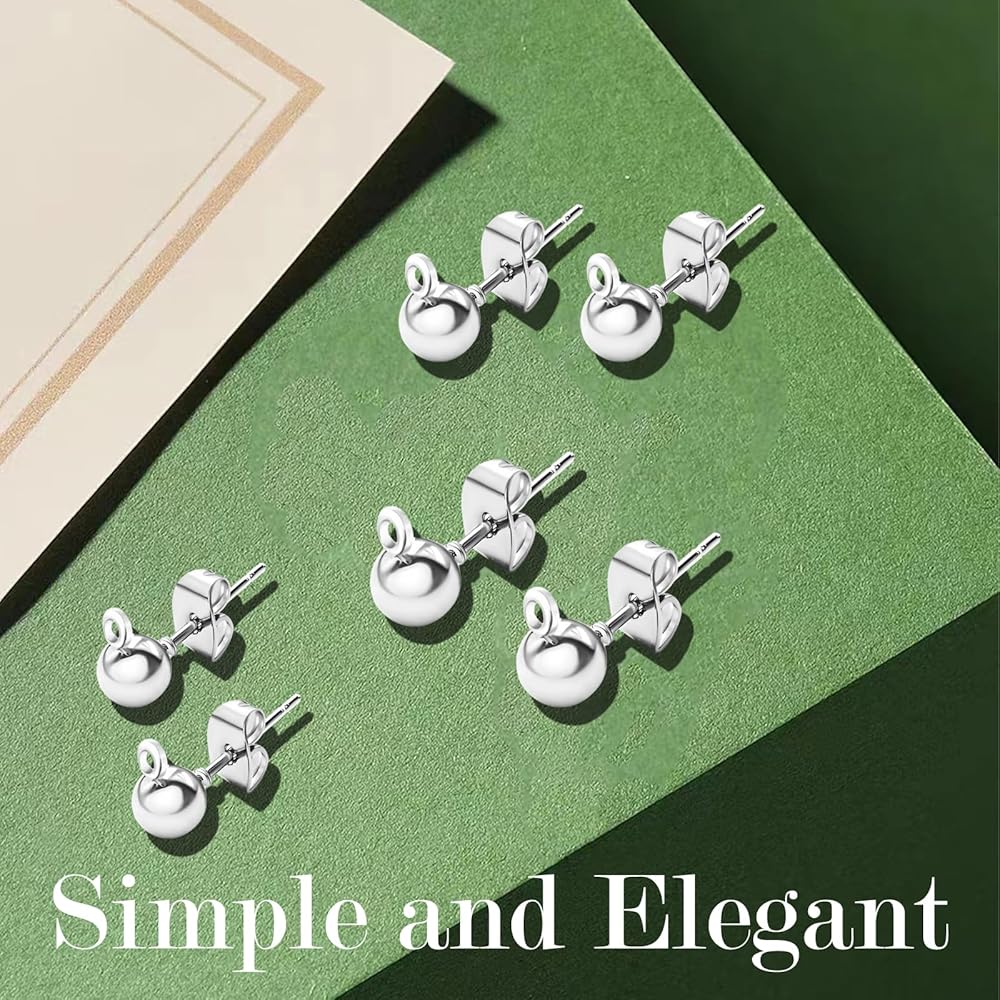 120Pcs Ball Earring Posts Stud with Loop, Hypoallergenic Round Ball Earring Posts Stainless Steel with 120 Pcs Butterfly Ear Back for DIY Jewelry Making Findings, 4 mm 5 mm 6 mm (Silver)