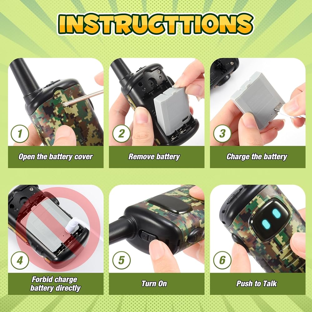 ⚡تصميم قابل لإعادة الشحن وأكثر أمانًا: لجعلها أكثر أمانًا لأطفالنا، أخرج البطارية واشحنها لمدة ساعة واحدة، واستمتع بما يصل إلى 8 ساعات من وقت اللعب، لذلك لا تحتاج إلى شراء البطاريات والتخلص منها مرارًا وتكرارًا. تم تخصيص حجم البطارية لدينا لمنع الوصول إلى أنابيب الأطفال، وهو أكثر أمانًا من أجهزة الاتصال اللاسلكي الأخرى.