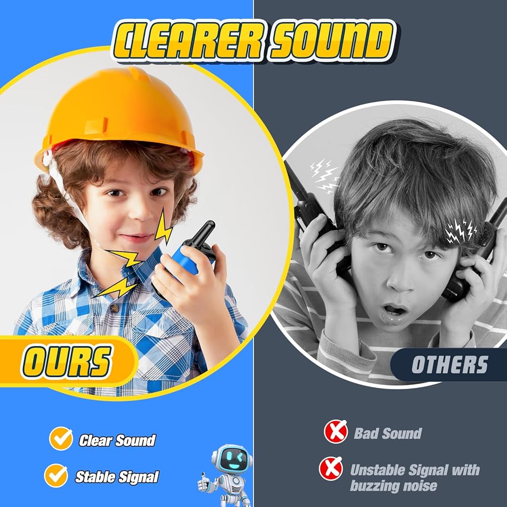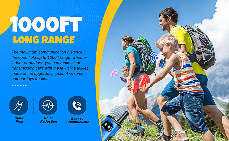 صوت واضح تمامًا: تتميز أجهزة الاتصال اللاسلكي الخاصة بنا بتقنية الصوت الواضح المتقدمة التي تضمن أن يكون صوت أطفالنا واضحًا، مما يجعلها ألعاب أجهزة الاتصال اللاسلكي الرائعة للأطفال في السوق. بفضل الاتصالات الخالية من الكهرباء الساكنة ومدى يصل إلى 1000 قدم في الظروف المثالية، سيتمكن أطفالنا دائمًا من البقاء على اتصال مع أصدقائهم.
