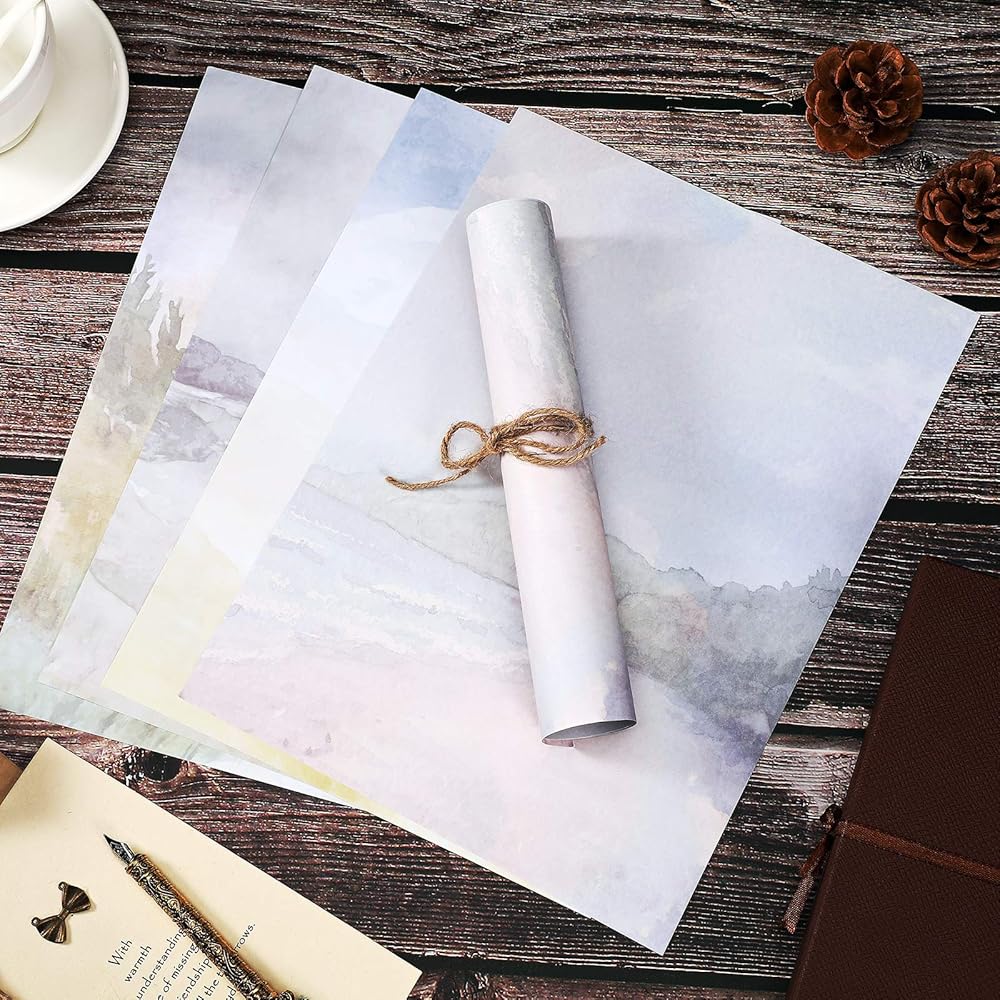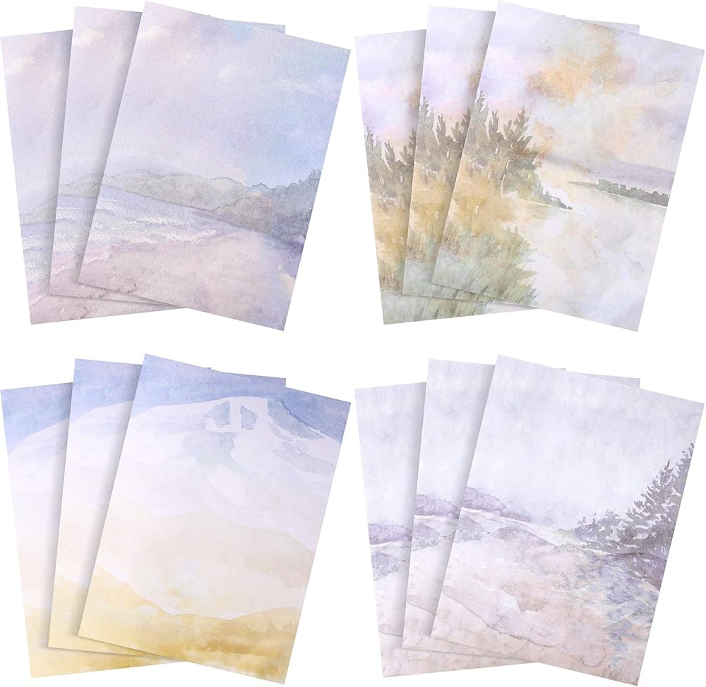 60 Sheets stationary papers 12 scenic watercolor styles writing stationary papers letter, double sided writing paper, 8.5 x 11 inches