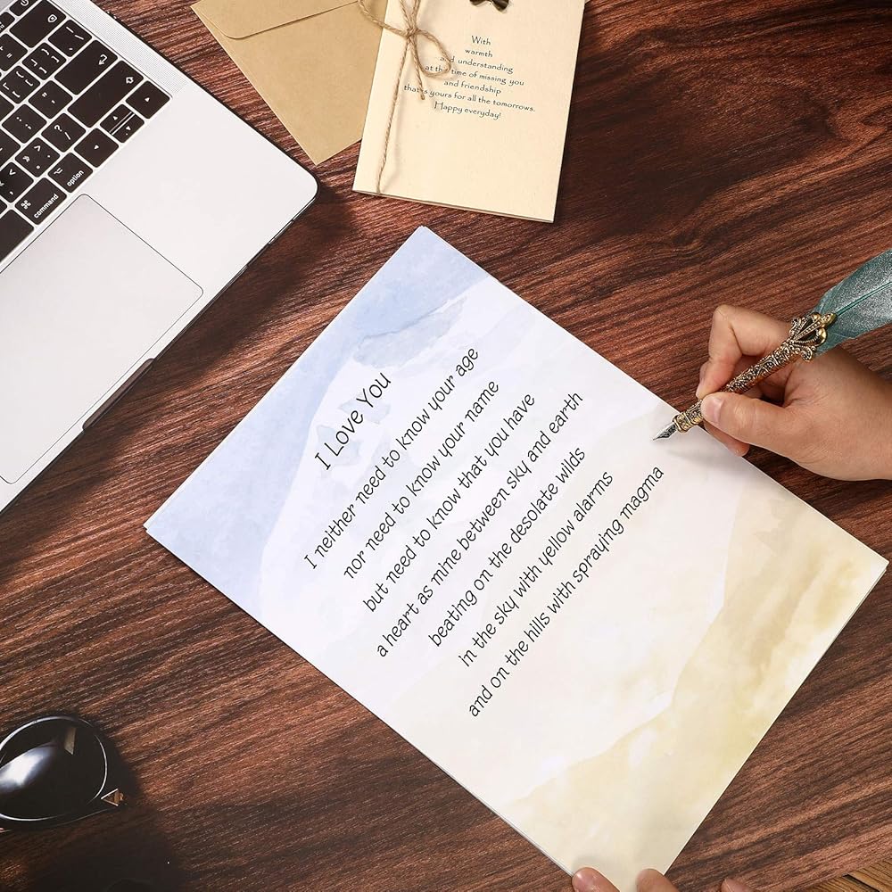 Each writing paper has enough space for you to write and draw freely, you can use it to make party invitation, greeting card, thank you note, etc.. The beautiful watercolor landscape patterns can also be applied for gift wrapping, wall and table decoration.