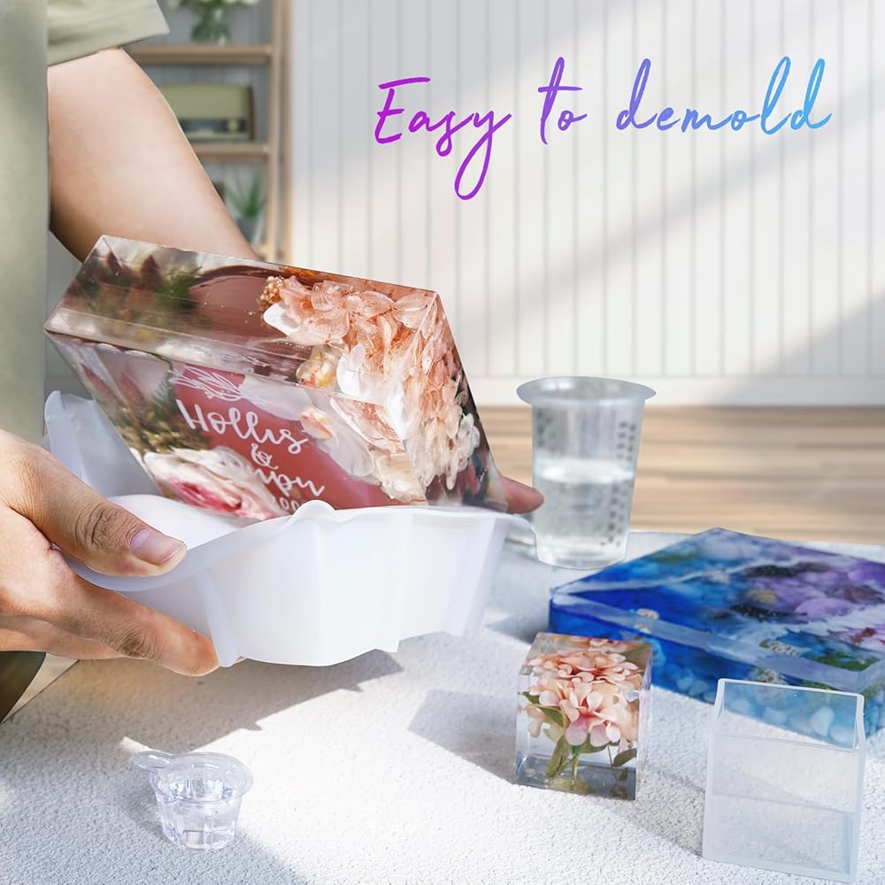 【Important Use Tips】: 1) These resin molds silicone large are very highly resistant to heat but it's highly recommended to avoid using a torch/heater directly onto the resin epoxy molds as it will eventually damage the silicone molds 2) Pouring resin in layers is highly recommended while using deep and large silicone molds.Tips :requires approx 46oz, 33oz, 14oz of clear epoxy resin to fill the large resin molds to full.