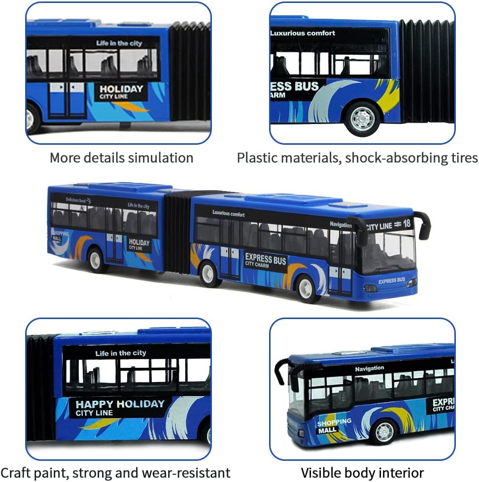 🚌[Superior Diecast Bus Toy] The die-cast vehicles are made of high-quality metal alloy and plastic. There are no sharp edges or corners that can hurt your child. Its attractive color and the smooth edge will keep your little ones entertained for a long period! This model car withstands enthusiastic play and complements the fun with enhanced durability.