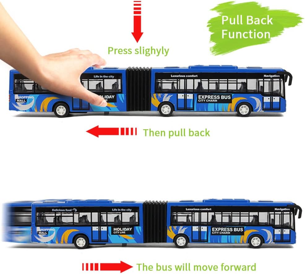 City Bus Toy for Kids, Die Cast Alloy Pull Back Vehicles, Metro Articulated Electric Bus with Sounds and Lights, Model Cars Toys Educational Gift for Kids Boys Girls Ages 3+