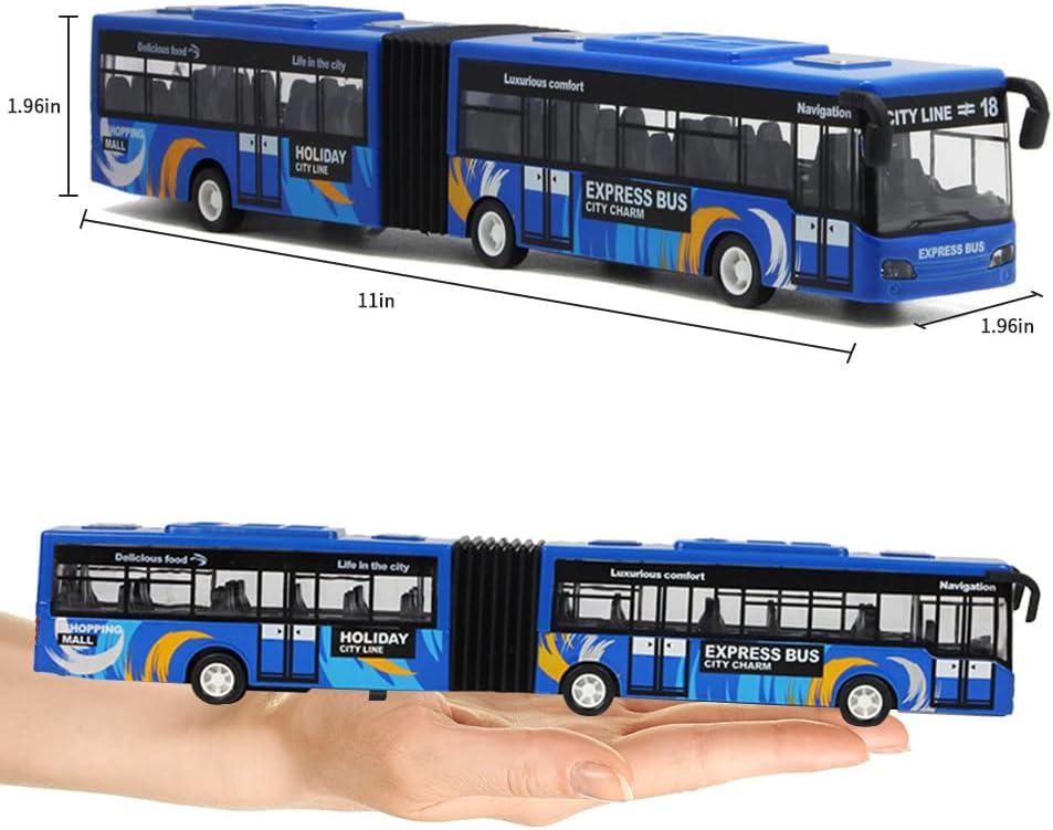 🚍[Perfect Size For Playing] Our city bus toy has 3 colors available. You can choose your favorite color for your child and bring the toy closer to their life. 1: 80 scale approx 11” x 1.96” x 1.96” for each car. Small size and easy for small hands to grip. It is easy to carry for indoor outdoor fun playtime.