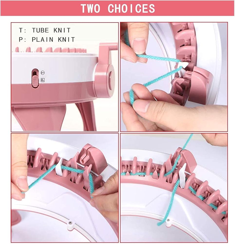 🌸[Easy to use] - Create a flat or round stitch in seconds with hand crank operation, Just thread the yarn into the spindles and turn the crank to knit your own cool fashion accessories like hats, scarves, gloves, socks, leg warmers and clothes!