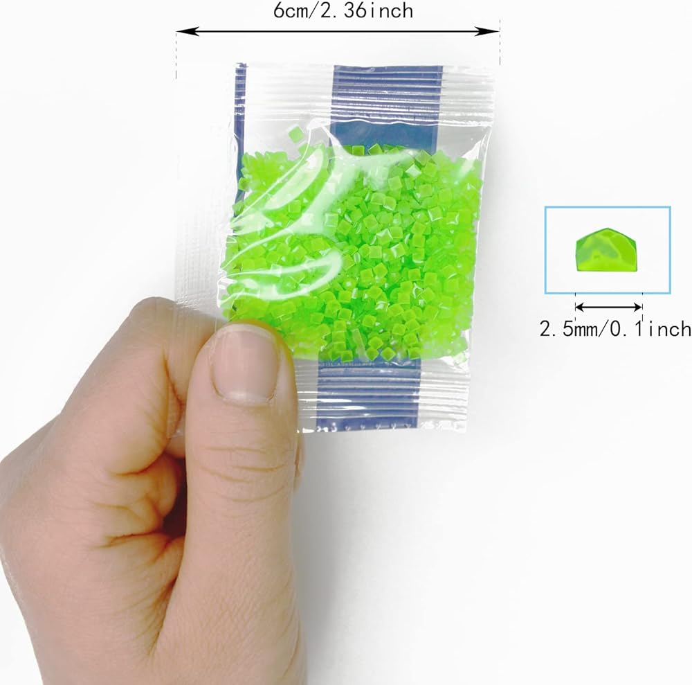 USED FOR DIAMOND PAINTING: The square diamond beads can add gloss to your diamond painting. Sticking it on your diamond painting, make your diamond painting glow in the dark, jelly-like transparent texture with multiple surfaces that make them sparkle. The diameter of the diamond is 2.5MM . It can be used for square diamonds replacement to make your diamond art more sparkling.