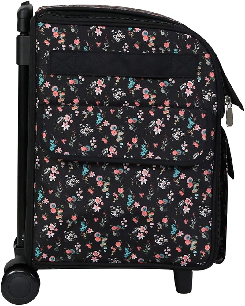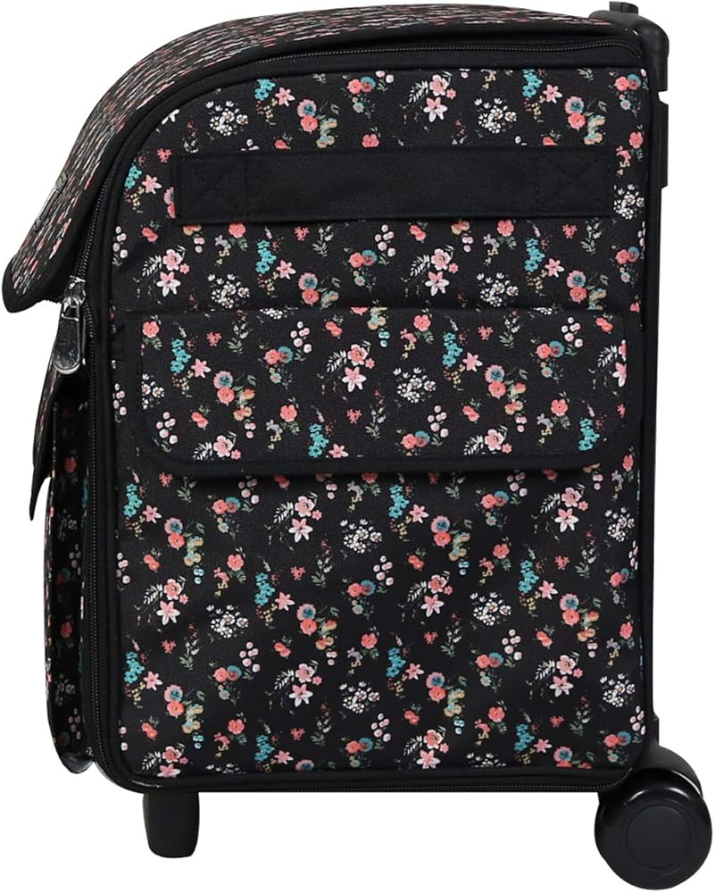 Everything Mary Rolling Serger Machine Tote – Black Floral Carrying Case for Overlock Machines – Compatible with Brother, Singer & Juki – Sewing Thread & Supplies Organizer