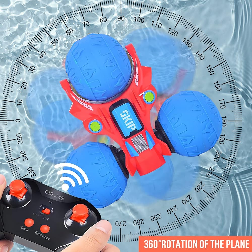 UNIQUE KIDS 1: 12 Waterproof Amphibious 360° + 360° Flip RC Car | Durable Inflatable Wheels | All-Terrain Water & Land Toy | 2.4 GHz for Kids 6-12 Years (Blue)