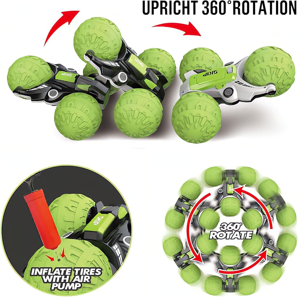 🌟 AMPHIBIOUS & DURABLE INFLATABLE WHEELS: Our RC car features large 9 cm rubber wheels, providing smooth driving on land, sand, uneven roads, and even in water! The wheels are durable and designed to withstand various terrains, ensuring endless fun for kids.
