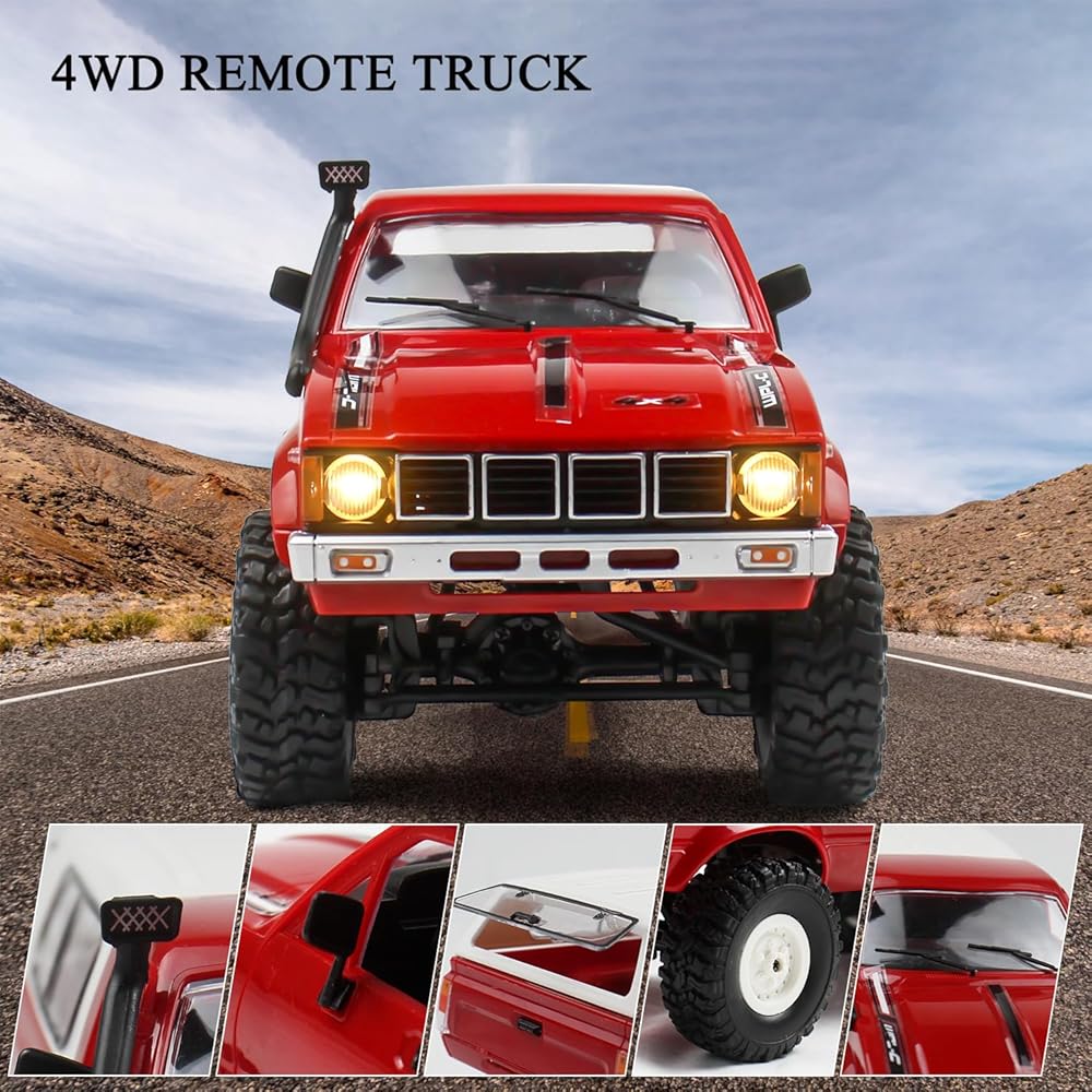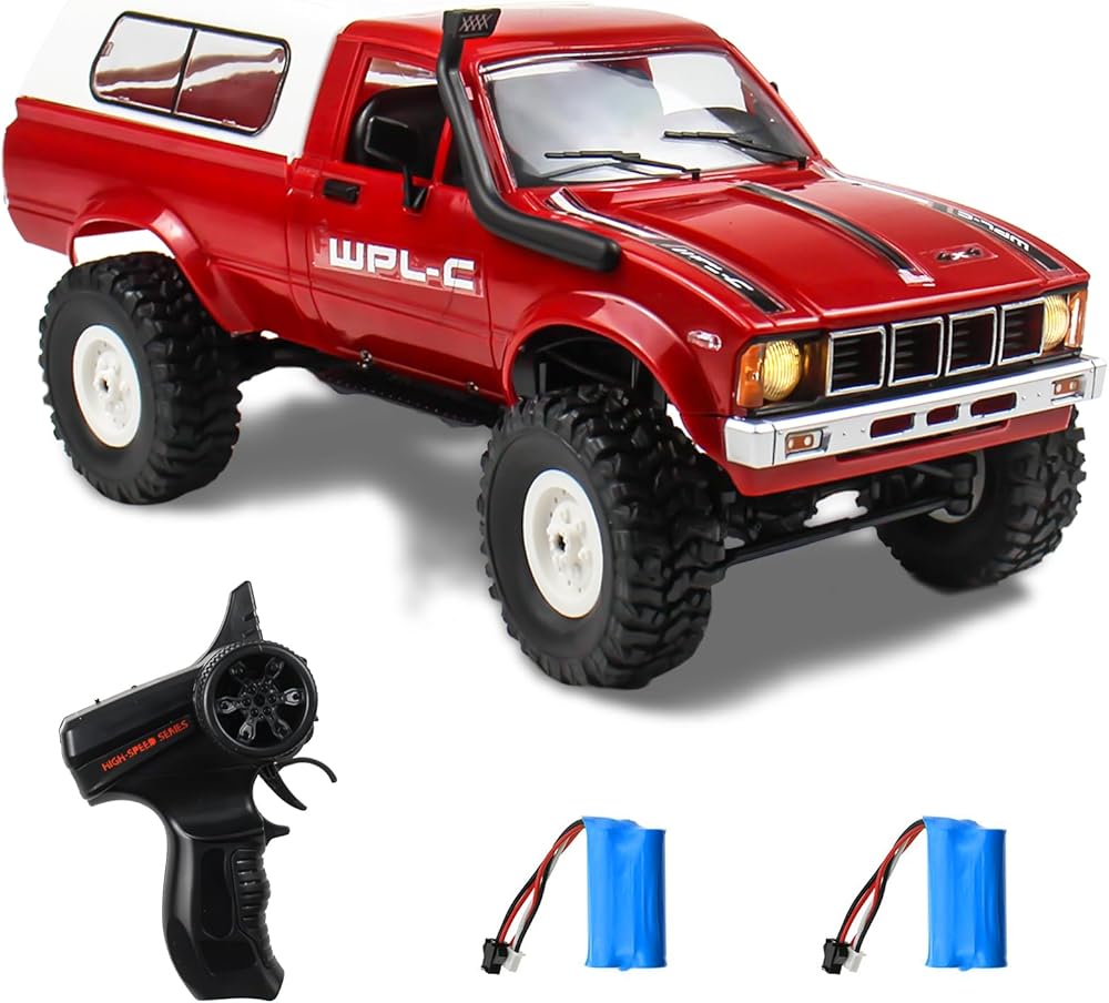 RC Crawler 1/16 Scale RC Rock Crawler, WPL C24 All Terrain RC Car RTR 4x4 Off-Road Remote Control Trucks with LED Lights and Two Batteries for Kids and Adults