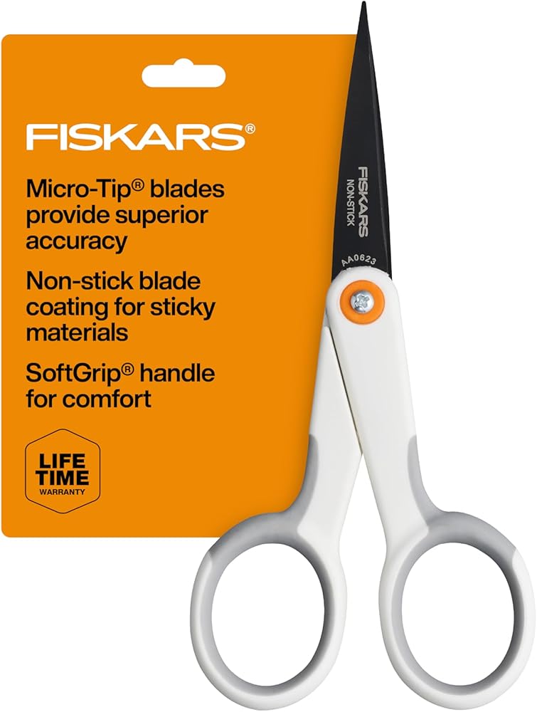 Fiskars Premier No. 5 Micro-Tip Fabric Scissors elevate your creativity by providing a unique design for crisp, clean cuts on intricate details and tight patterns. Generations of sewers, artists, and makers have sought Fiskar's wide selection of premier fabric-cutting scissors for crafting and sewing. The No.5 Micro-Tip scissors combine Fiskars Original Orange-handled Scissors design with exceptional performance and features, including Micro-Tip blades that provide superior precision. High-grade stainless steel blades are precision ground to cut all the way to the tip, while a double-loop handle provides excellent control for right- and left-handed users. For every intricate detail, cut with a legend.