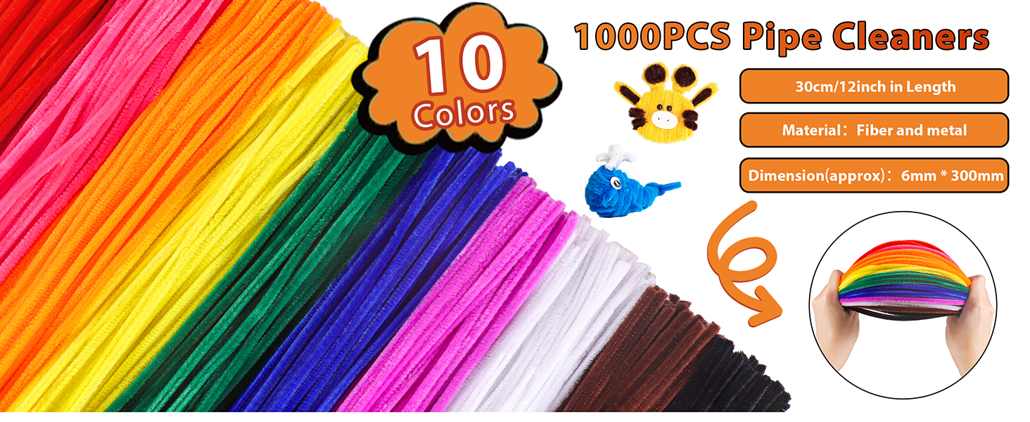 Large Quantity: These pipe cleaners craft supplies come in a pack of 1000 pieces, providing ample amounts for various craft projects