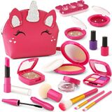 💄【Premium Pretend Makeup Kits】💄: WESAYEE play makeup set contain eye shadow, compact powders, blush, round & square glitters, lipstick, mascara, nail polish, real brushes, powder puff, nail separators. All fake make up come packed in a lovely unicorn purse.