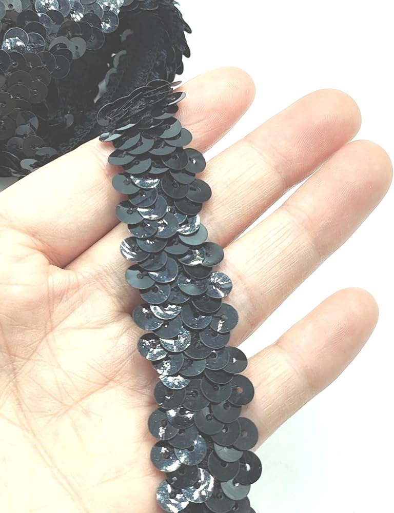 Material:Elastic Flat Sequin made of material,sequin trim bright in color, can be applied to diy handmade gifts, crafts, decoration, costumes, ornaments etc.