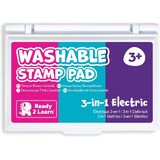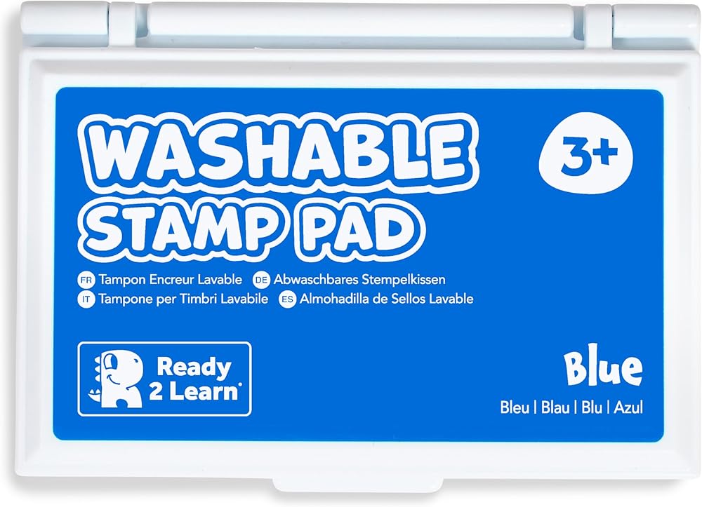 Stamp and create with this blue Washable Stamp Pad! Made of non-toxic ink, this stamp pad is safe for ages 3+. The ink is acid-free and fade resistant for archival quality, which means you can store your little artist's creations forever! An open-ended tool to decorate scrapbooks, notebooks or cards, this stamp pad inspires creative expression and imagination. As children stamp, they will develop fine motor skills and hand-eye coordination. The ink will wash off skin with soap and water. || Size of entire stamp pad (with plastic casing): 3.9"L x 2.75"W x 0.6"H; Size of ink pad: 3.4"L x 2"W.