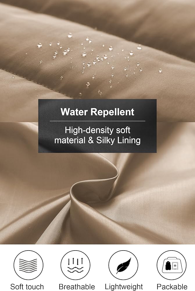 💕Compressible & Cozy; This Soft,thermal insulated vests,warmth,comfort and great fit.The high-quality lightweight fabric is soft to touch and skin-friendly.Easy to pack and carry (If you compress it and tie it, it packs taking up very little room.)